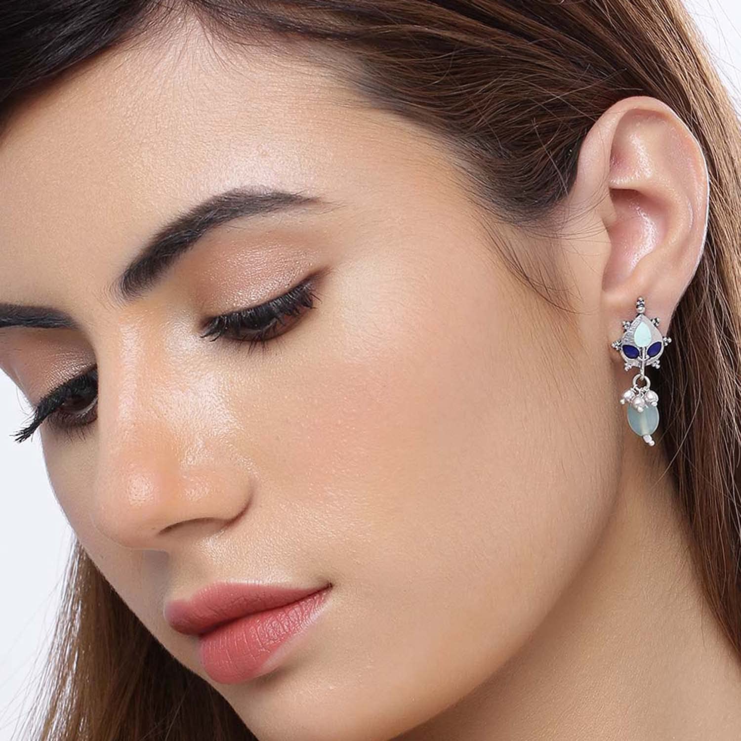 Brass Pink Colourful Drop Earrings with Beads for Women and Girls