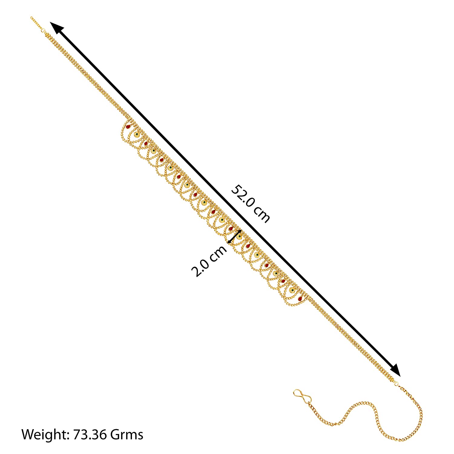 - DIMENSIONS: Belly Chain Length - 52 cm x Width - 2 cm, Weight - 73.36 gms