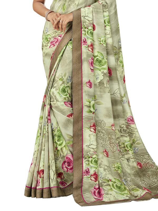 Lace Piping & Printed Crepe Silk Saree with Unstitched Blouse Piece