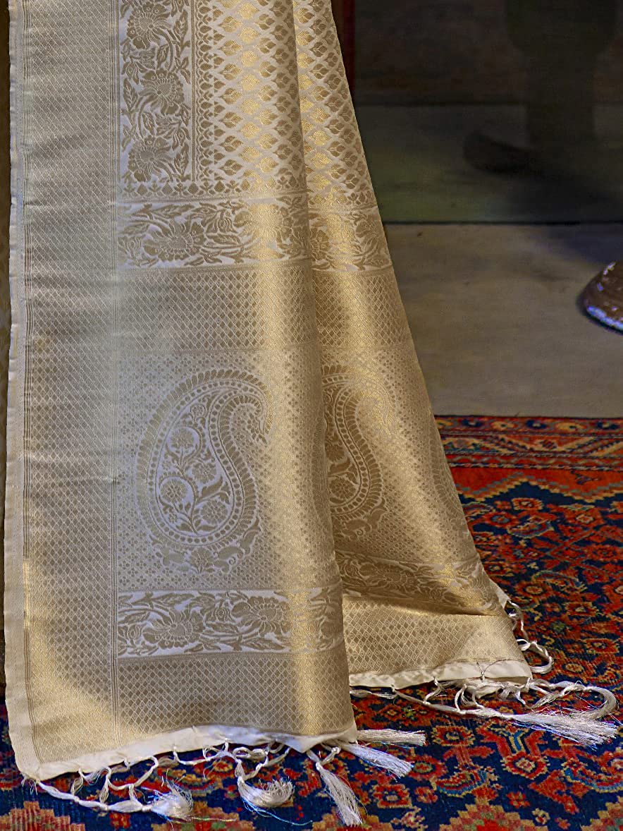 • Saree Color :-Creamy White || Blouse Color :-Creamy White