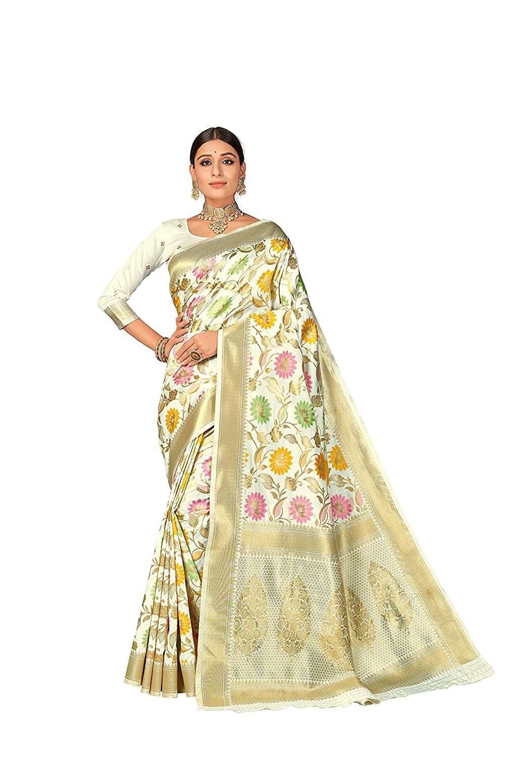 - Weave Type: Kanchipuram, kanjivaram jacquard saree; Work Type: Zari woven work, Saree Border: Border zari work border in floral design, Pallu: Floral zari work, Finish Type: Soft/comfort to wear; Saree Type: Soft cotton Banarasi silk sarees; Occasions: Party, festive, wedding wear, traditional wear. Best gift for your loved ones.