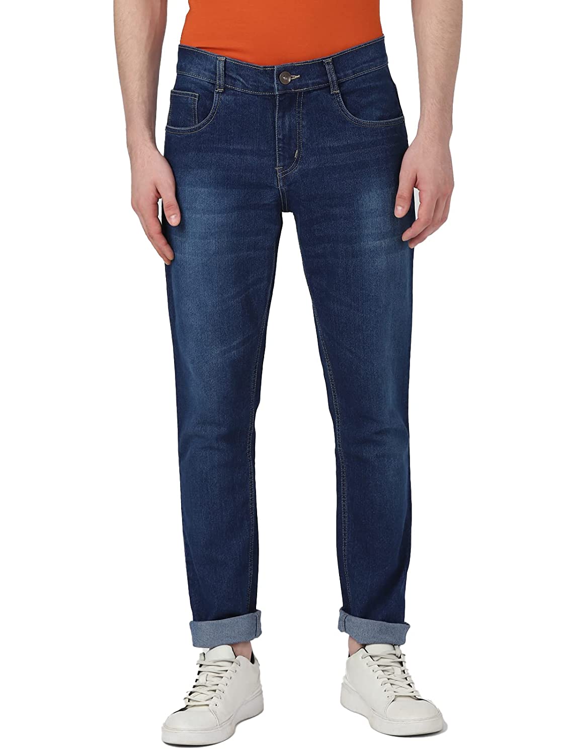 • Colour: Dark Blue || Style: Washed || Fit: Slim Fit || Waist Rise: Mid-Rise || Closure: Button