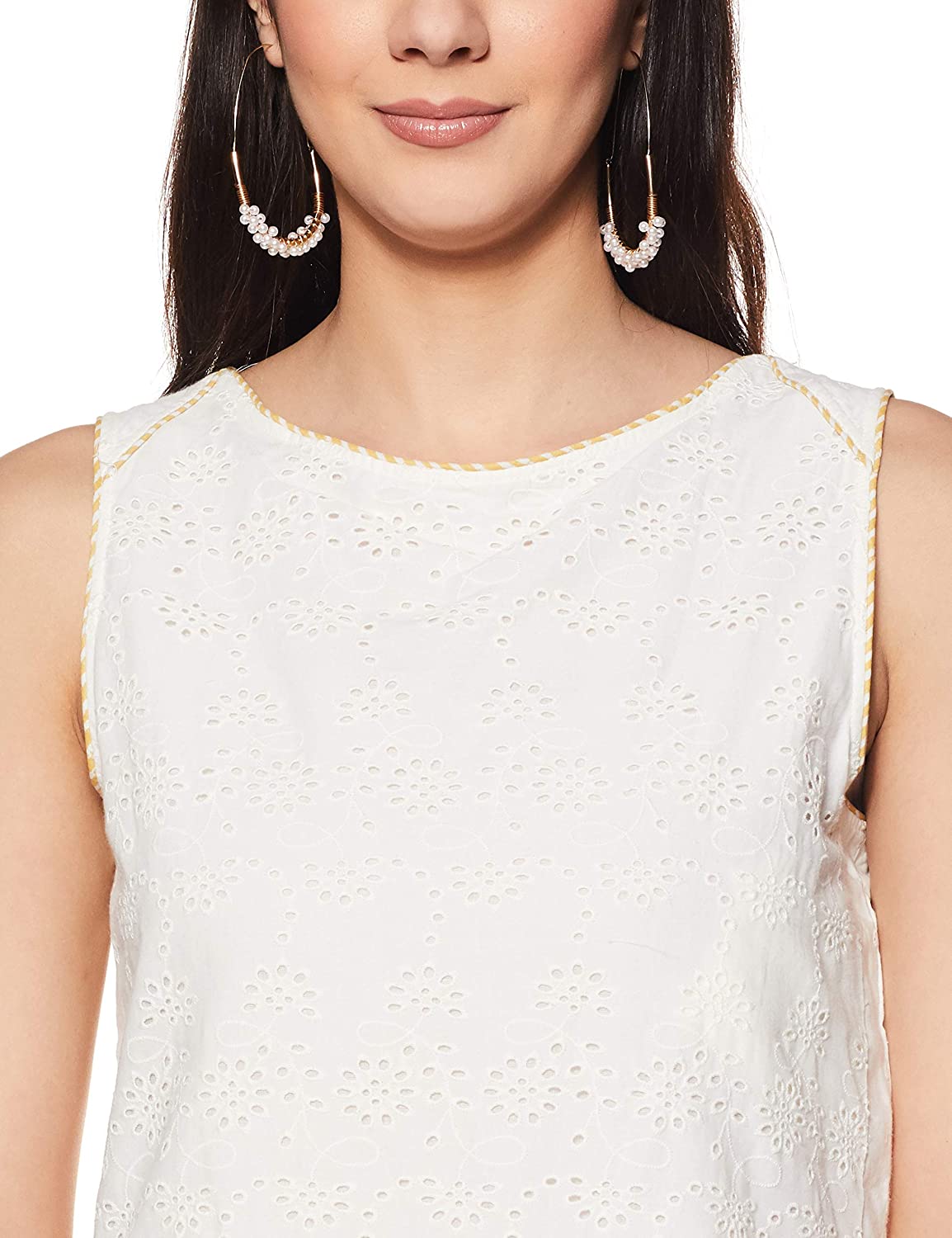 • White Cotton Straight Suit Set; Combines Straight cut Kurta, Sharara Pants & Dupatta