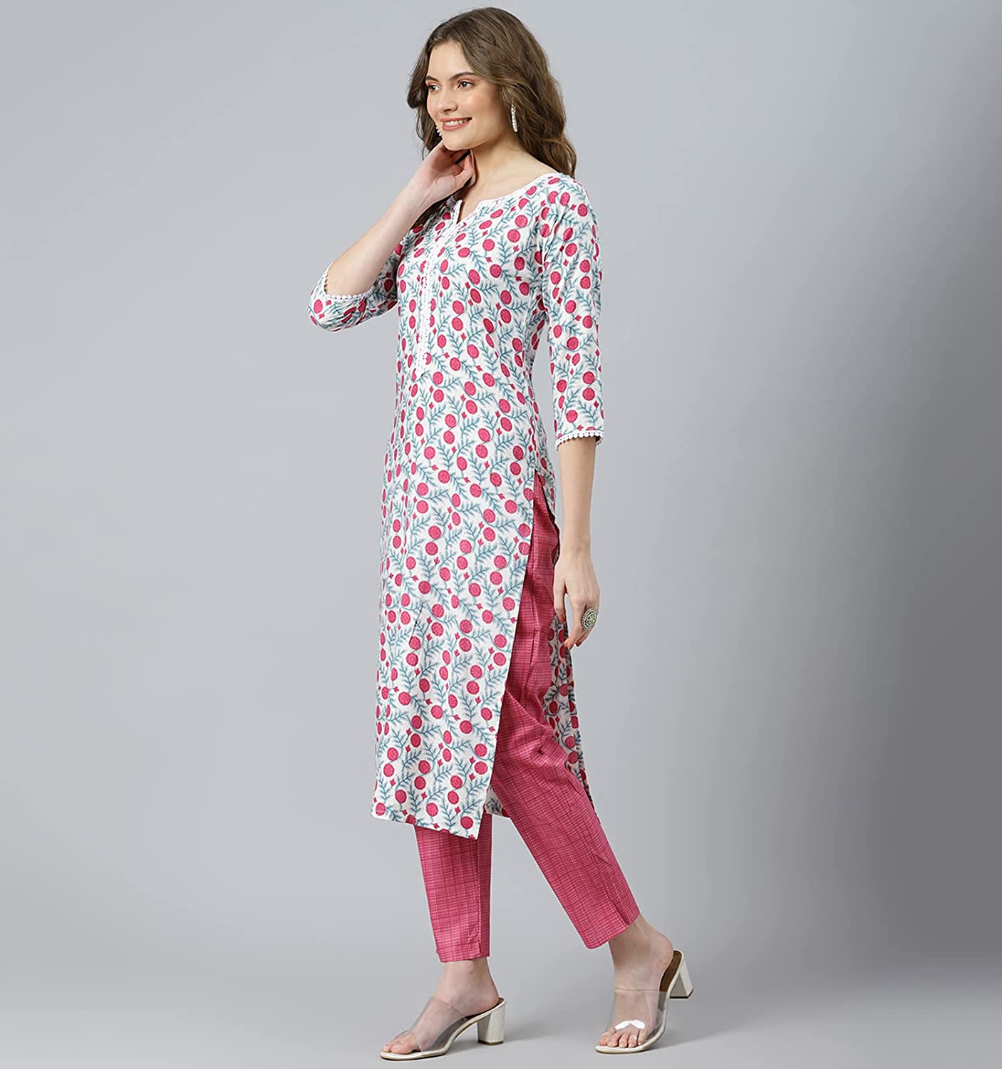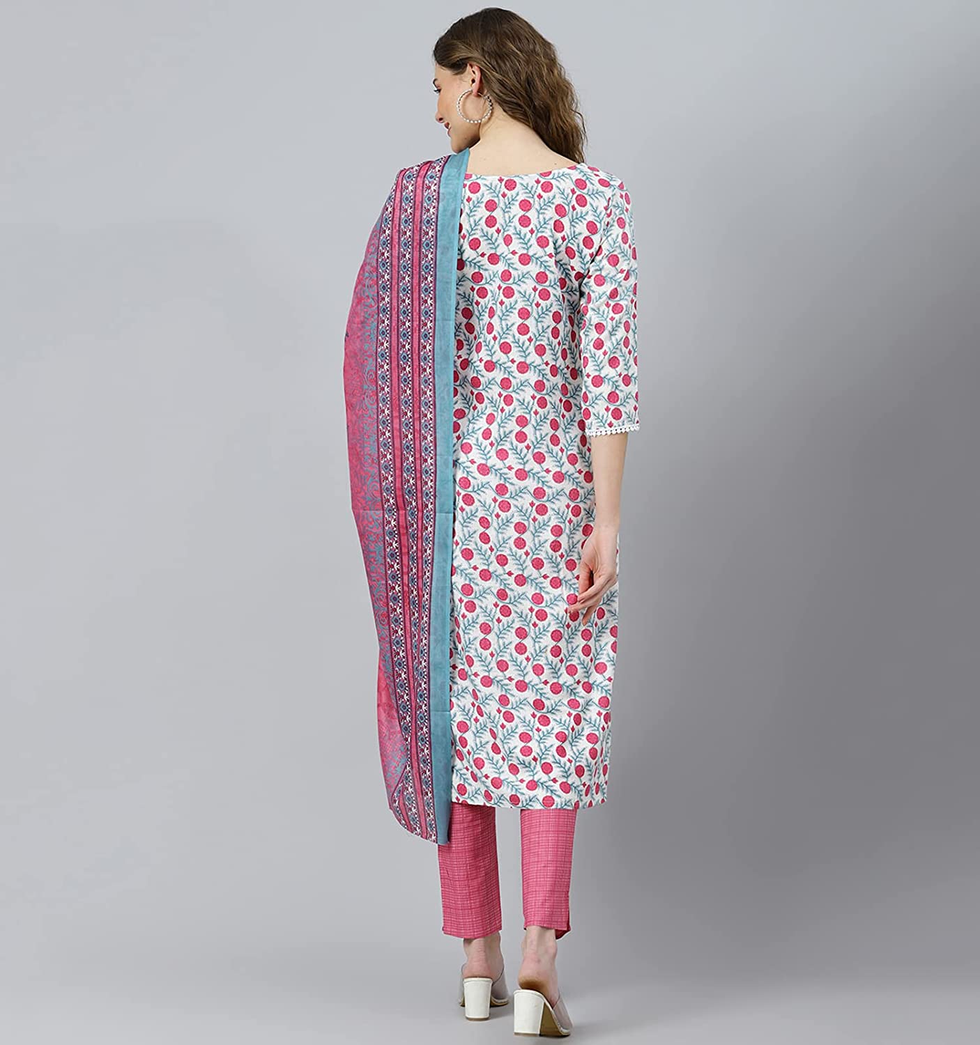 Women's Kurta with Pant and Cotton Dupatta Set. Readymade Salwar Suit Set for Women