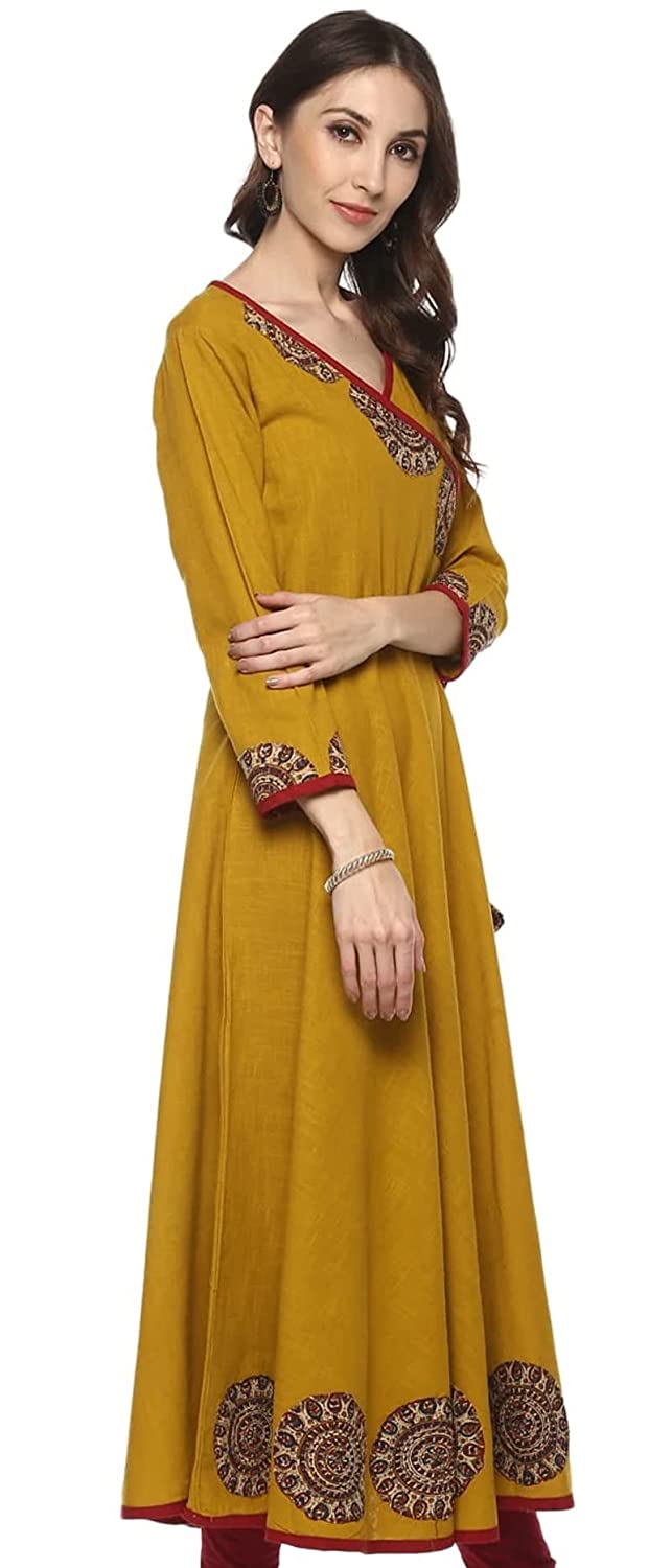 Women's Cotton Slub Patch Work Angrakha Kurta for Women