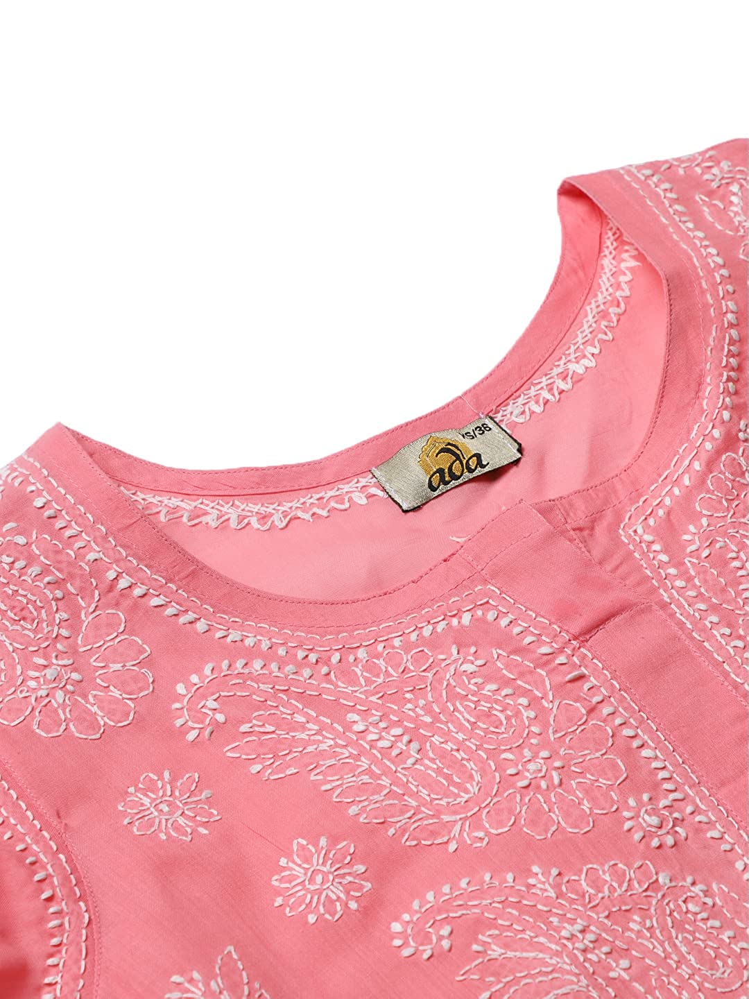 Hand Embroidered Lucknowi Chikankari Straight Cotton Kurta Kurti for Women