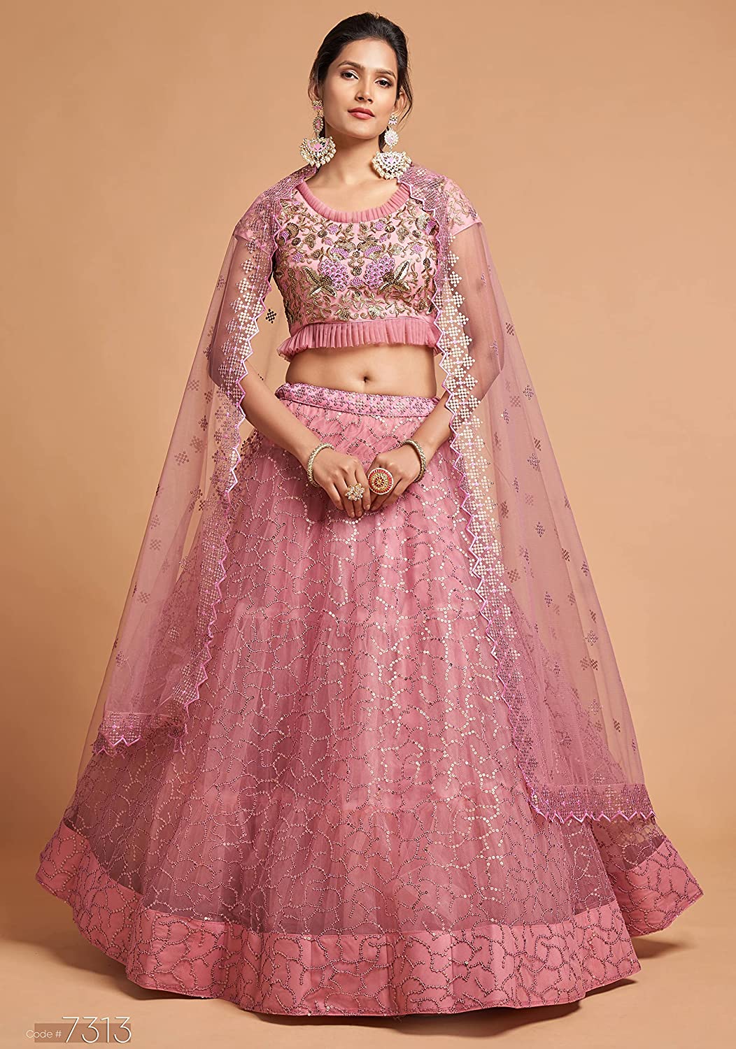 - Lehenga Fabric: Net; Blouse Fabric: Net; Dupatta Fabric: Net; Inner: Santoon with Cancan(tulle) layered net