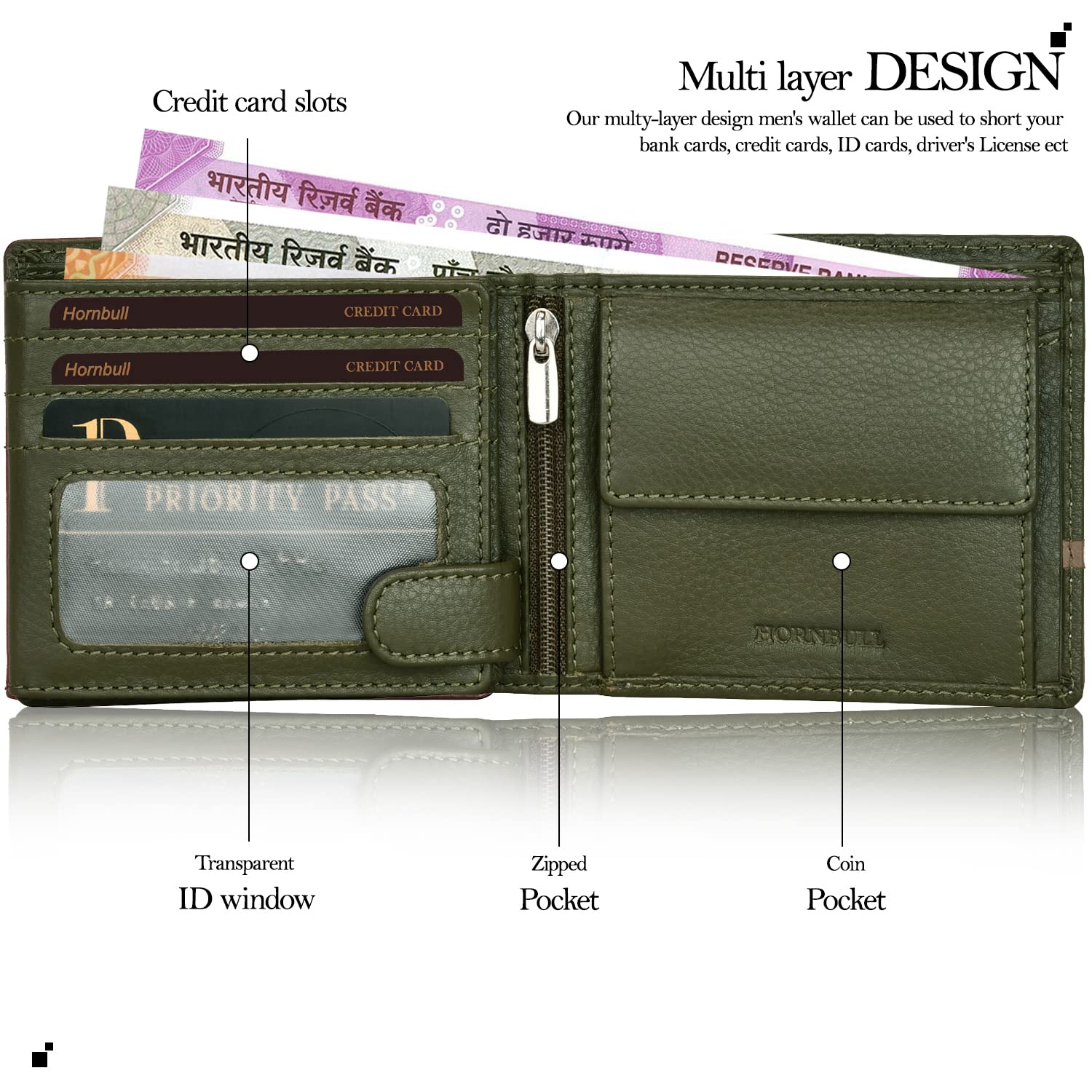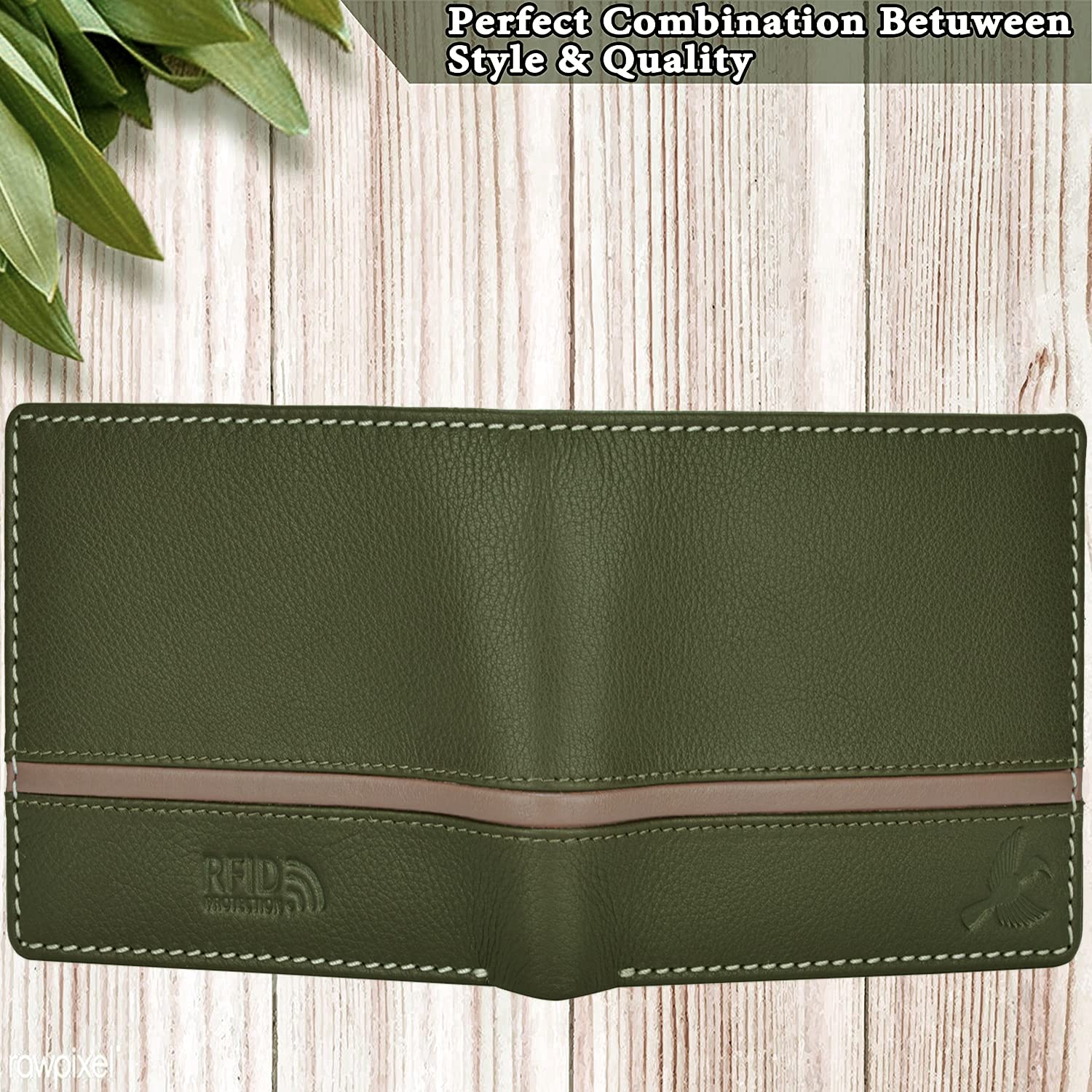 Denial Olive Leather Wallet for Men | Wallets Men with RFID Blocking | Mens Wallet