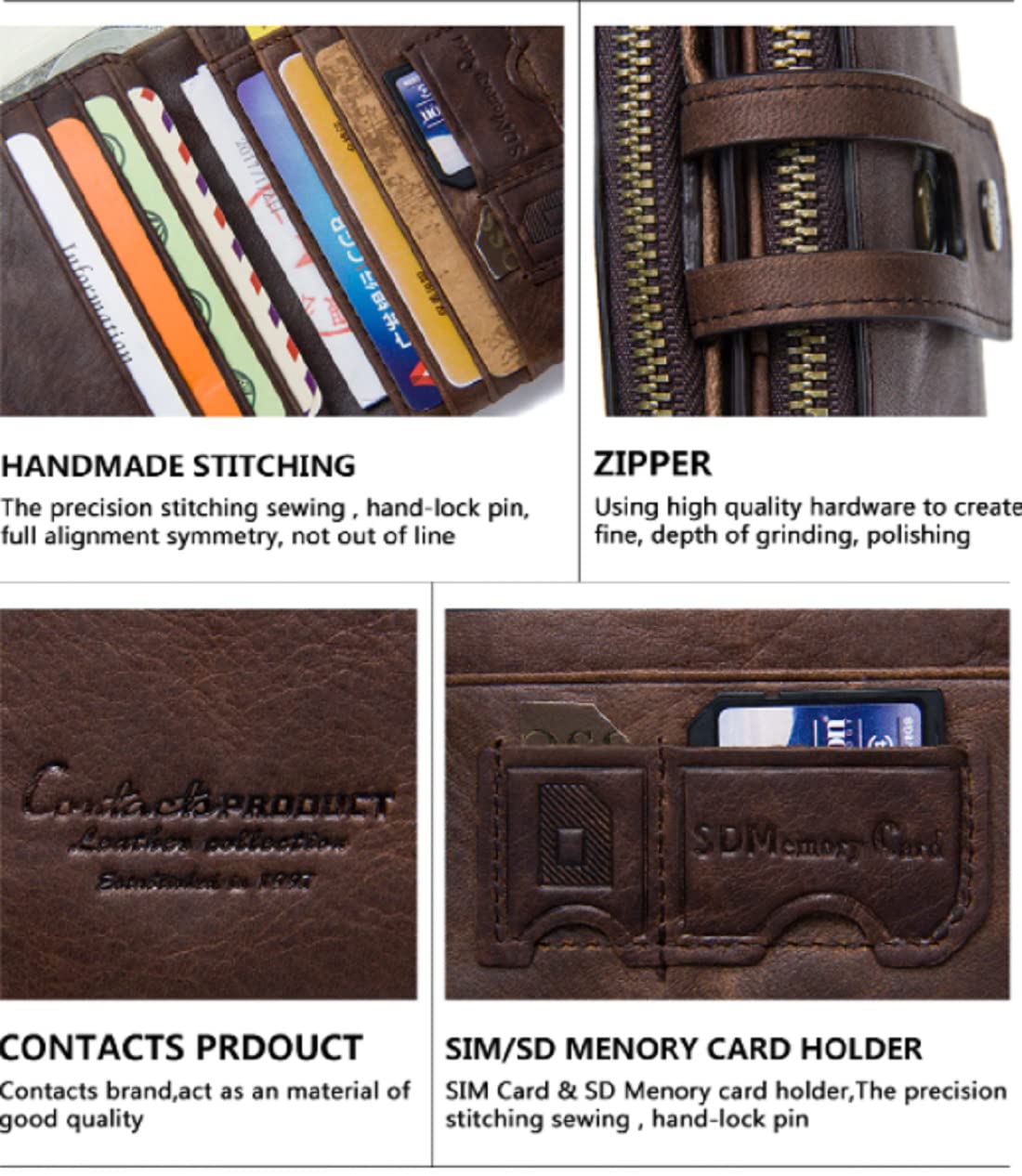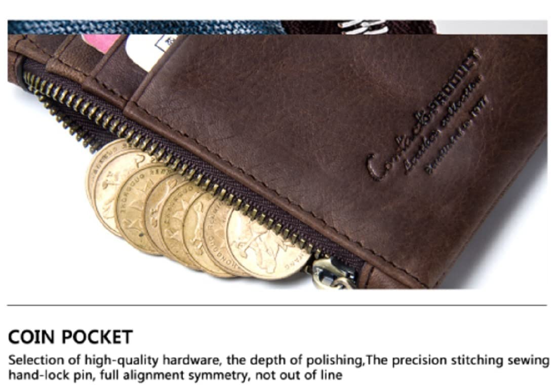 • Construction: This wallet is made of genuine leather. Crafted with top notch genuine leather and tough stitching. Hand made by professional artisans, beautifully crafted wallet that will only get better with age. This wallet looks great, offers a slim, lightweight design, and goes great with jeans or a suit.