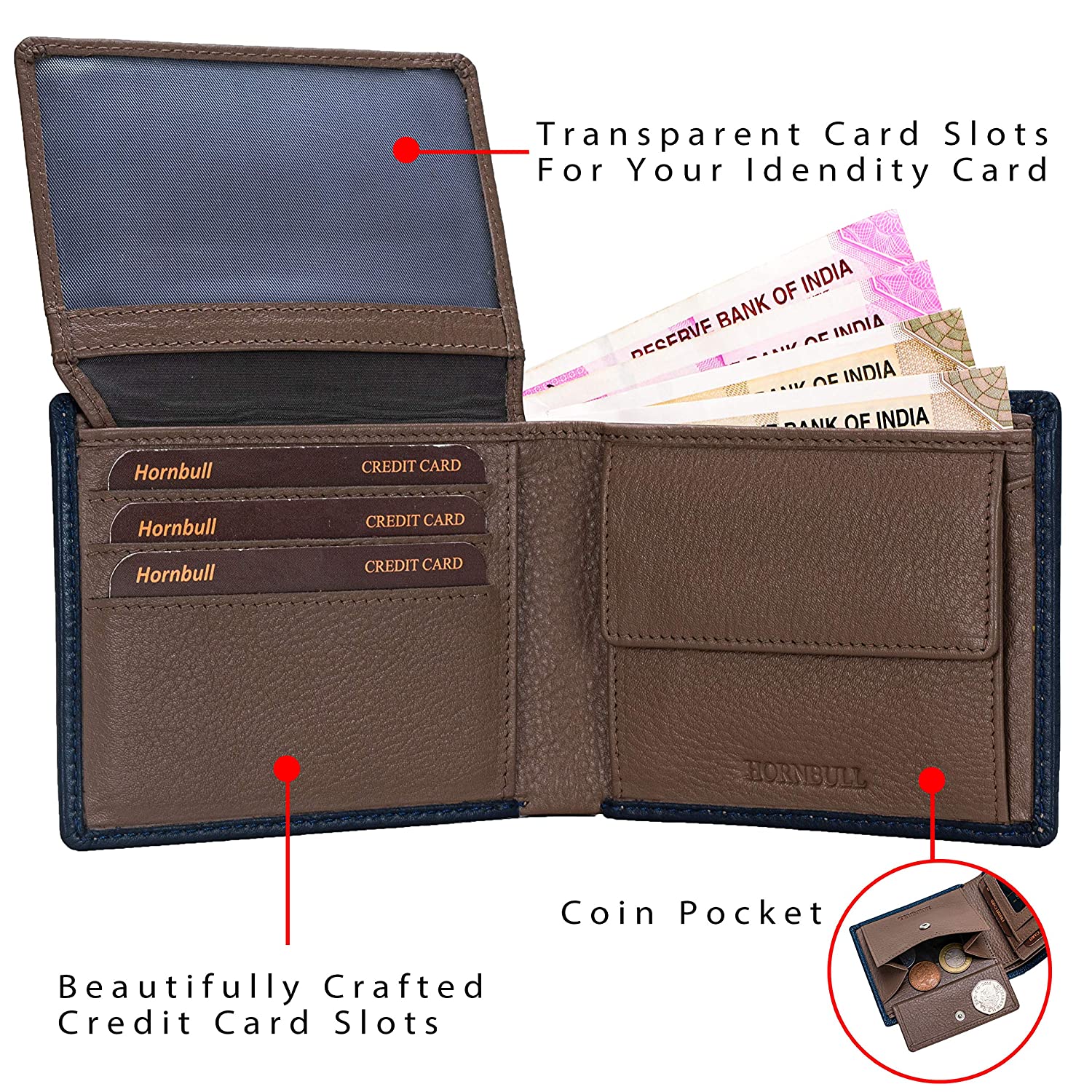 • MEN'S LEATHER WALLETS : There are 6 in build Credit card slots, 1 Transparent ID Window, 2 Secret Compartment, 2 money compartment and Currency compartment in this Leather Wallet, carrying all your needs with extra comfort while carrying Gents Wallets Leather. We have left nothing while designing this Leather Wallets