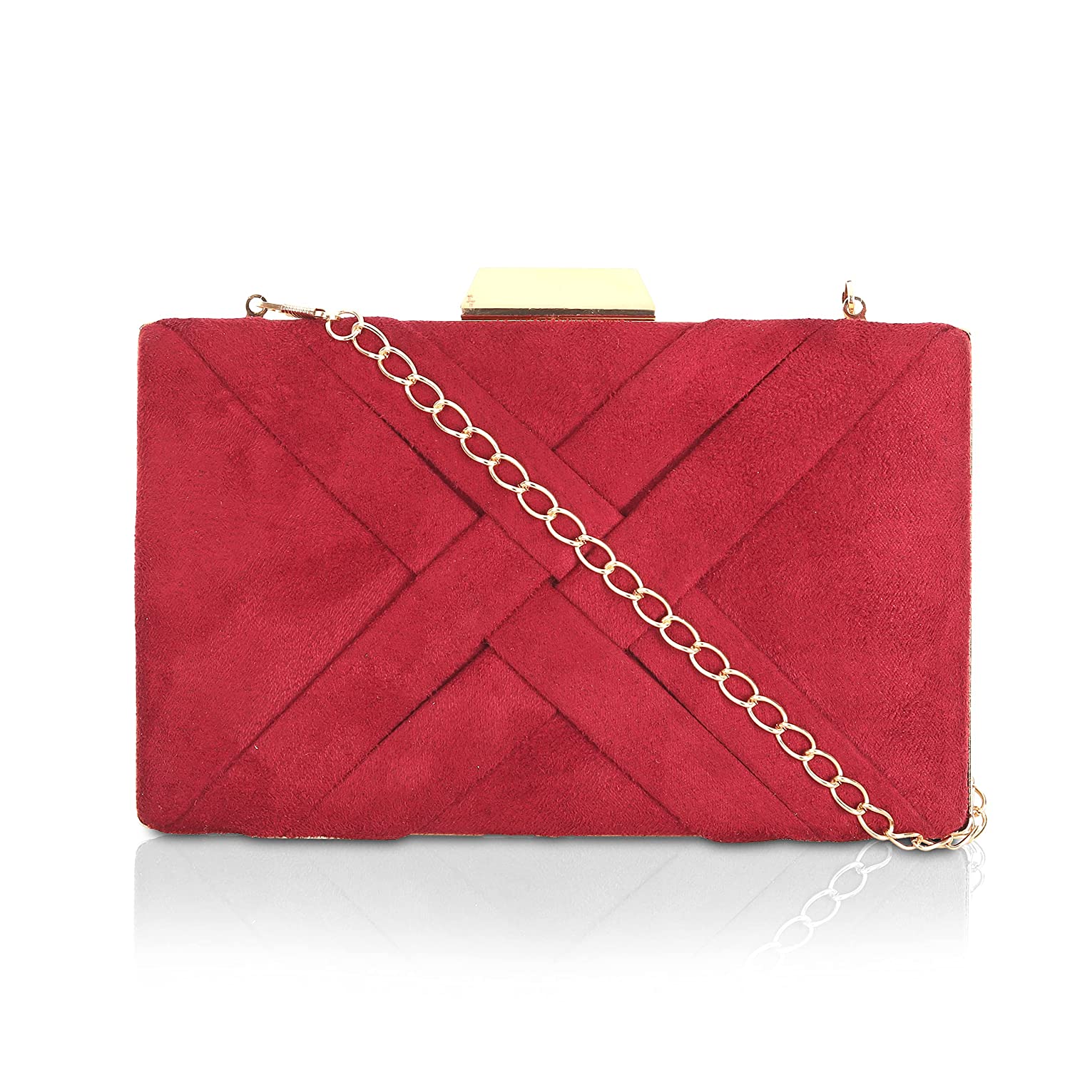 - This framed clutch is made of premium sued material and It consists of an exclusively imported metal frame , silk lining and a clasp closure