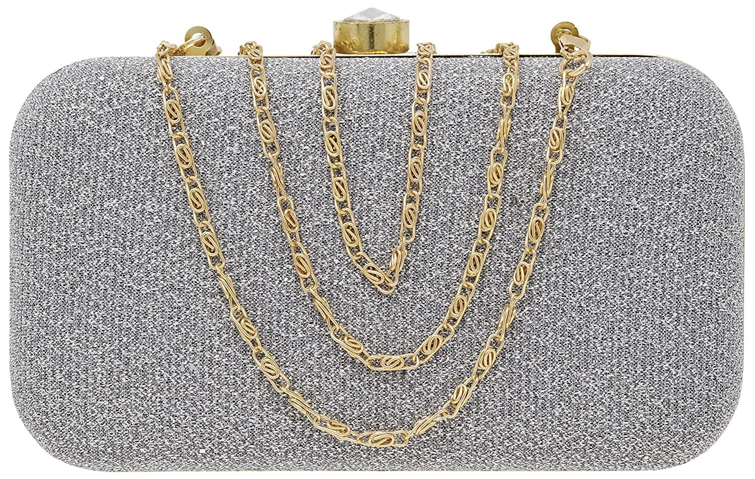 - Fashionable Metal Case Clutch is designed for elegant ladies, can be used as a shoulder bag or cross-body bag, chain can be hidden inside to make it into a clutch.