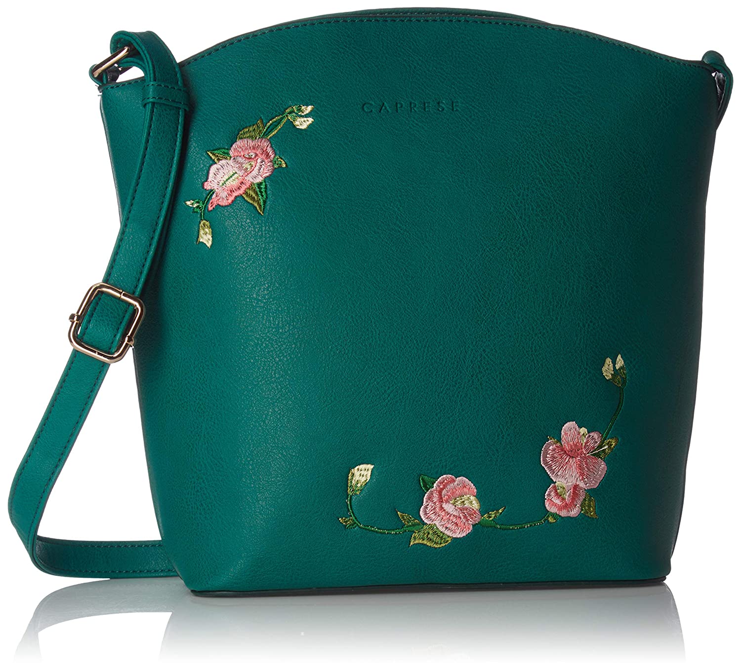• Faux leather material teal colored sling bag255 centimeters height x 27 centimeters length x 9 centimeters widthDo not expose to extreme heatFlat sling handlesEmbossed logo; multiple compartments
