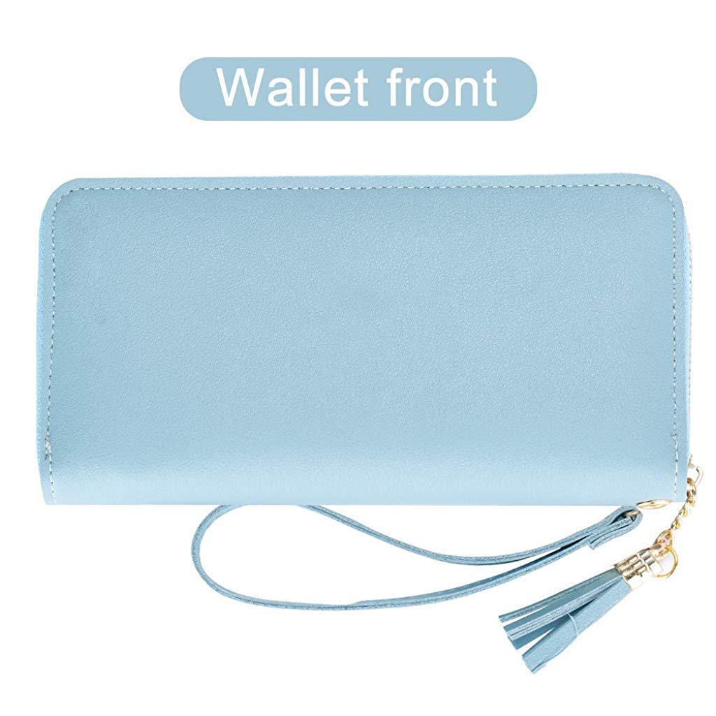 Women's Long Wallet Tassel PU Leather Multi- Slots Girls Zipper Coin Large Purse For Girls