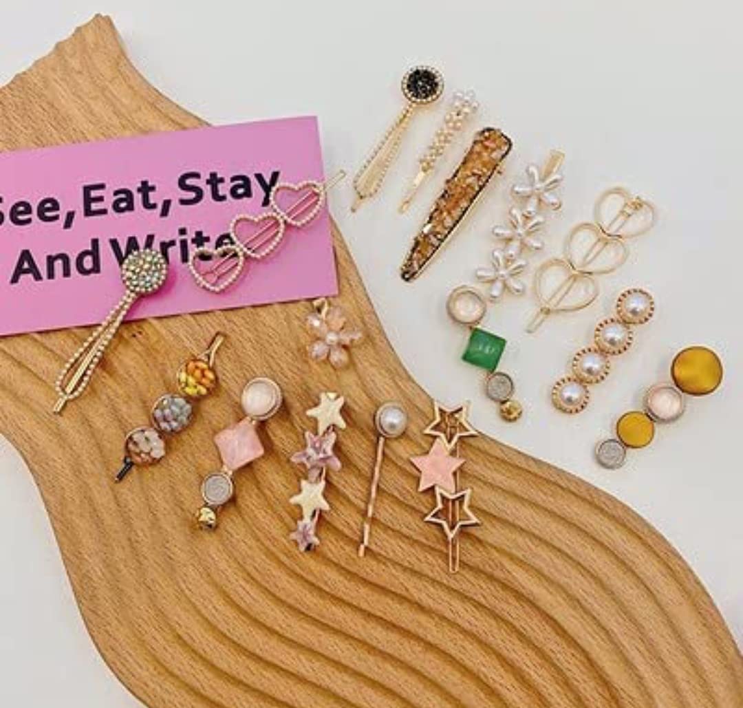 • Package include: Comes with 24 pcs pearl, rhinestone, resin, acrylic hair clips in 24 medium different sizes for any hair types like thick, thin, curly, straight, long or short hair.