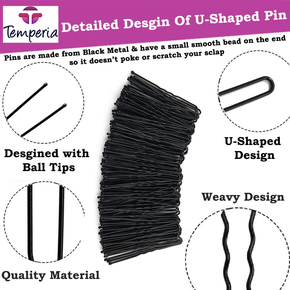 U Hair Pins for Women & Girls | Juda Pins (Pack Of 100) (7cm Long) | Stylish U-Shaped Hairpins for Hairstyling | Hair Styling Accessories Clips (Black)