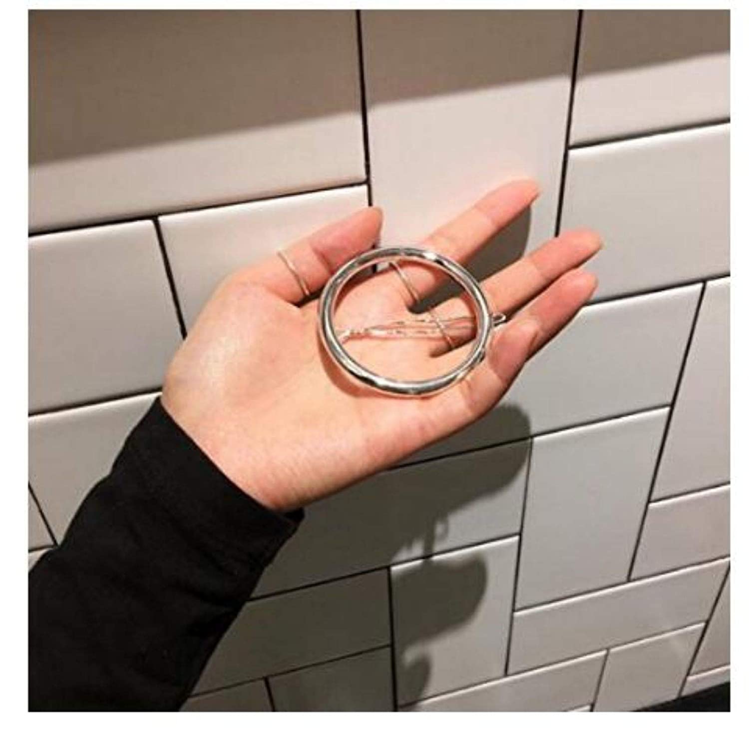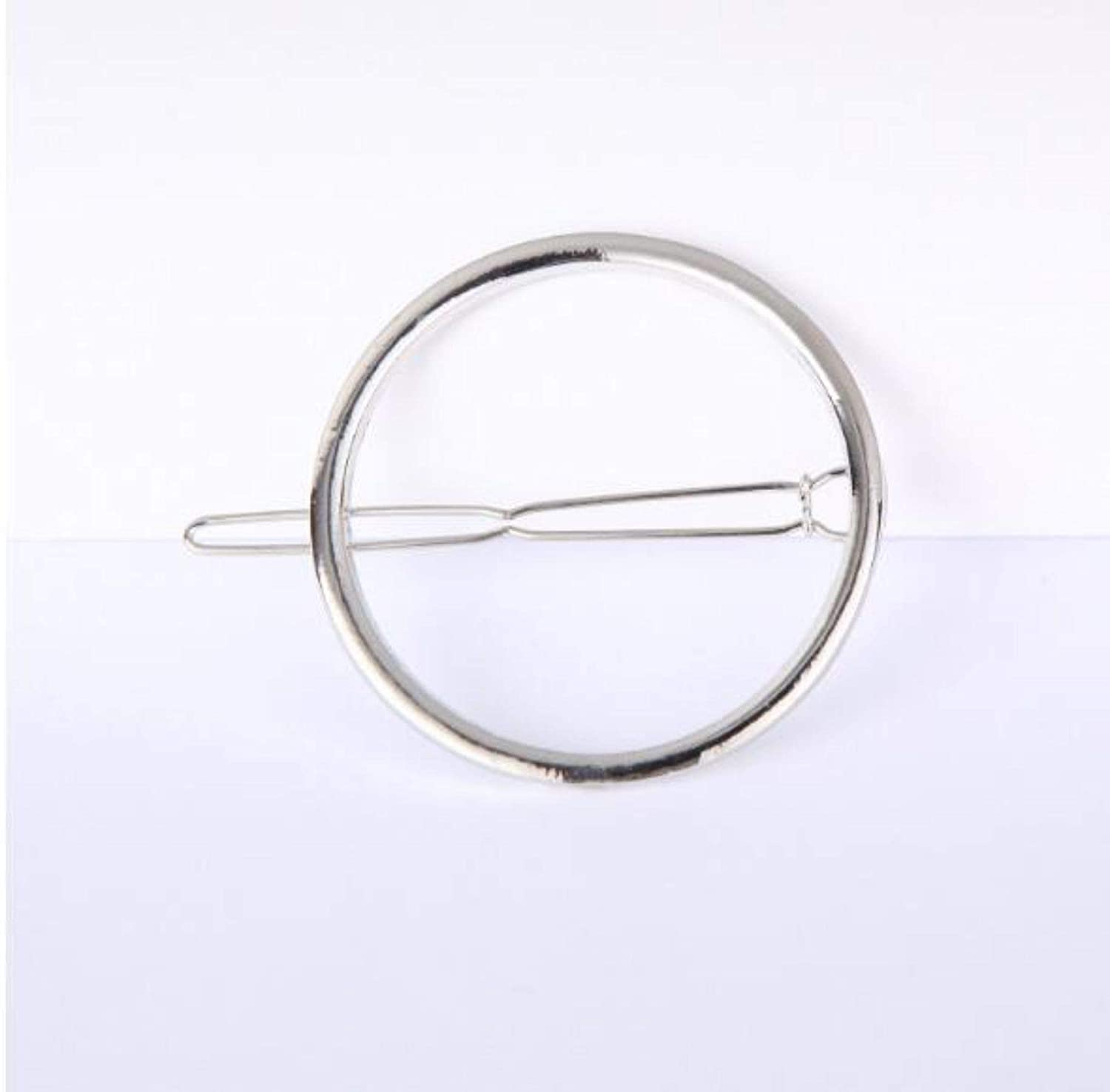 Silver Metal Simple Korean Wild Geometric Circle Hairpin Side Folder Headdress for Women