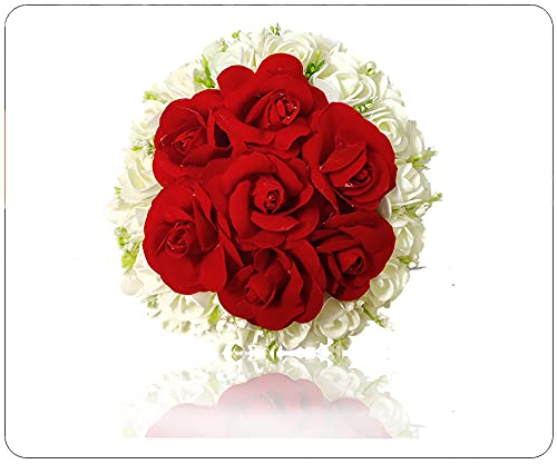 Artificial Floral Design with Red and White Roses Hairpin/Judapin/Juda Bun Bridal Hair Accessories For Women and Girls 2240, Red, Pack of 1