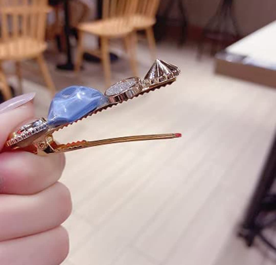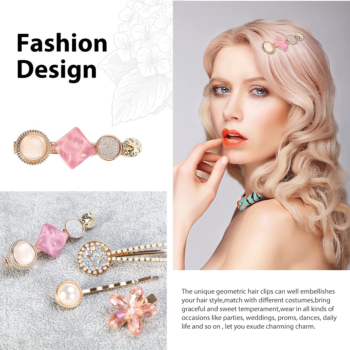 Korean Style Pearl Barrettes Women's Korean Style Hair Clip Hairpin, Marble Alligator Bobby Pins Duck-Billed Headdress Jewelry Hair Accessories for Girls, Gold, Pack of 1 (Geometric)