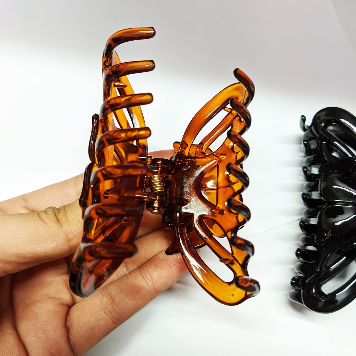 Hair Clips For Women 2 Pc Large Hair Clips Claw Clip Hair Accessories Butterfly Clips Girls Clutchers For Hair Women Accessories Korean Clutch Claw Clips Black and Brown Combo Of 2