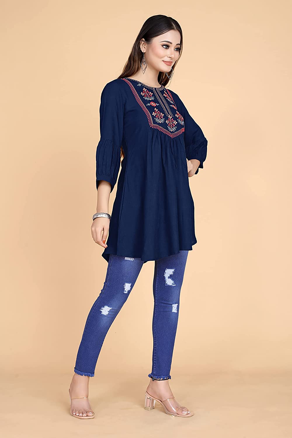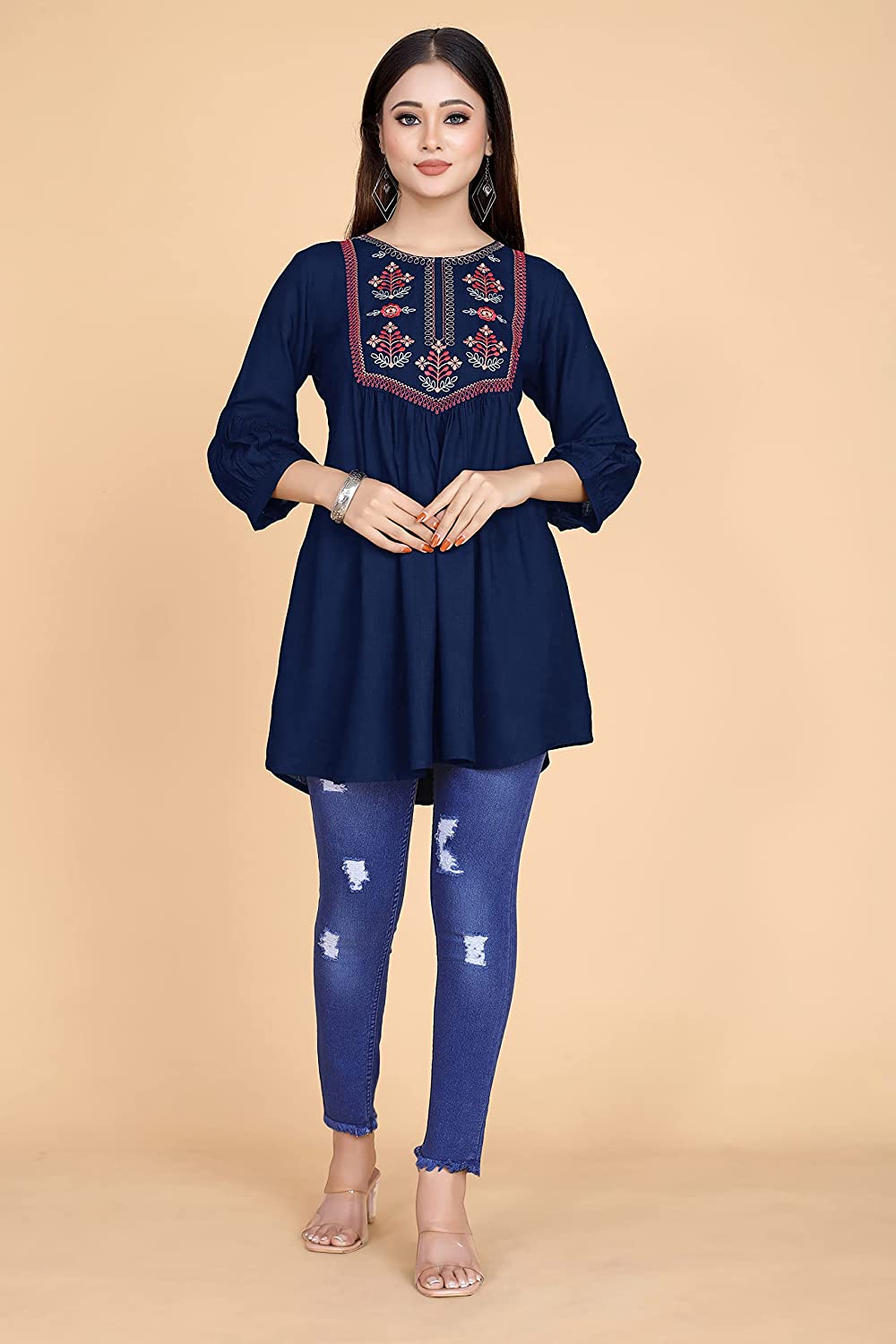 - 100% Rayon cotton looks really good with different embroidery work in front side of tops
