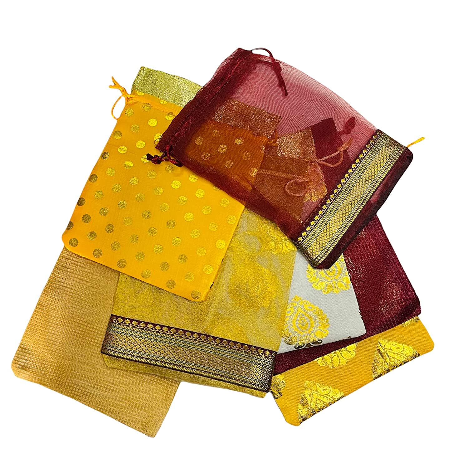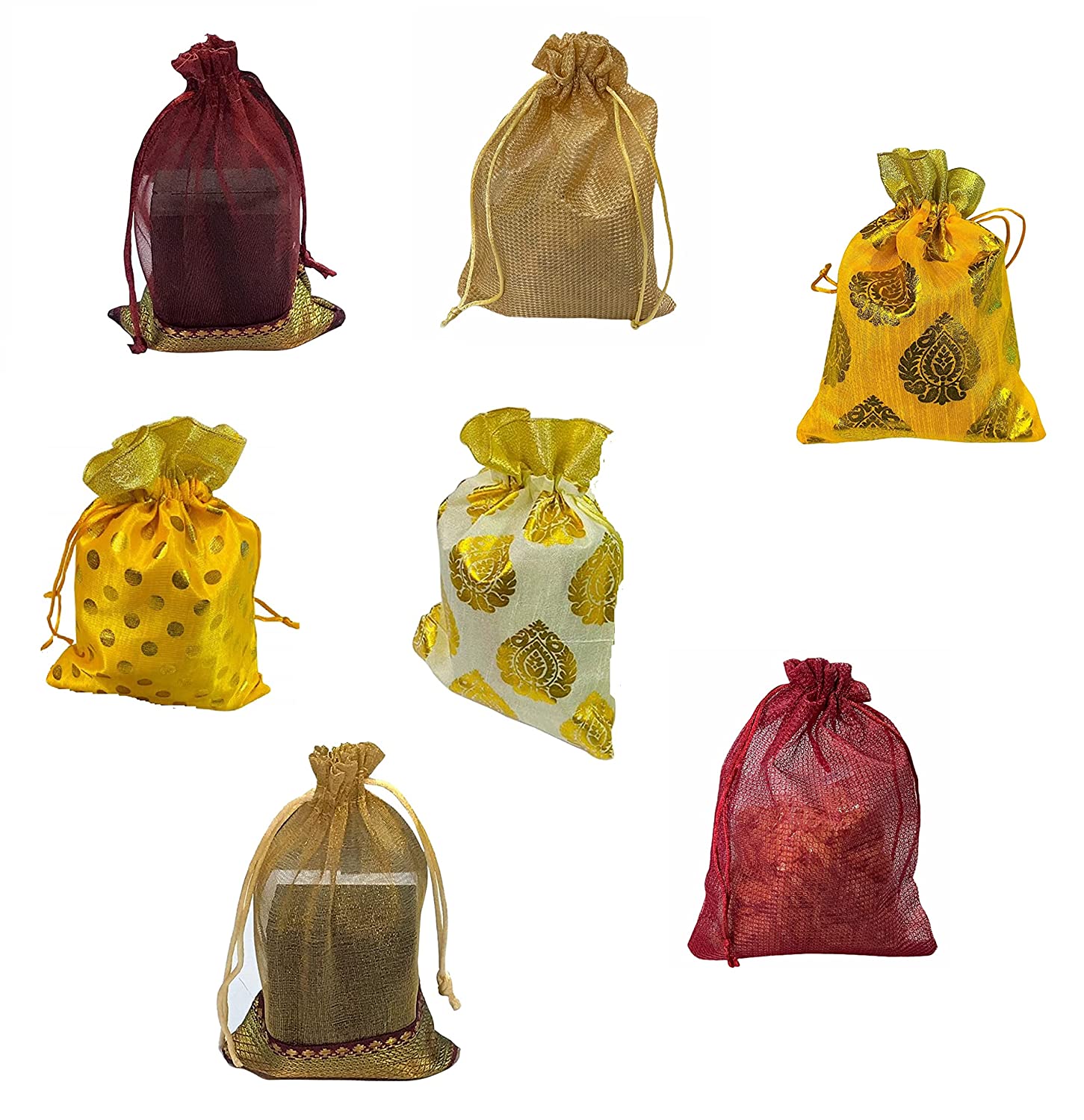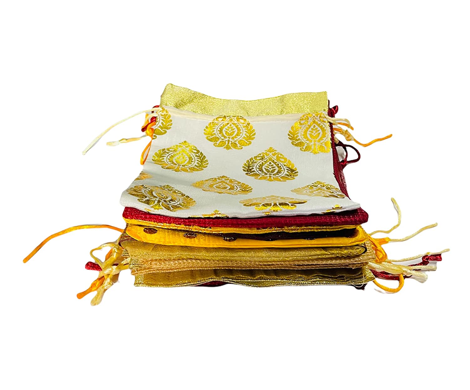 23 X 18 cm Women Assorted Multi Silk Gift Potli Bags for Gifting Pack of 14