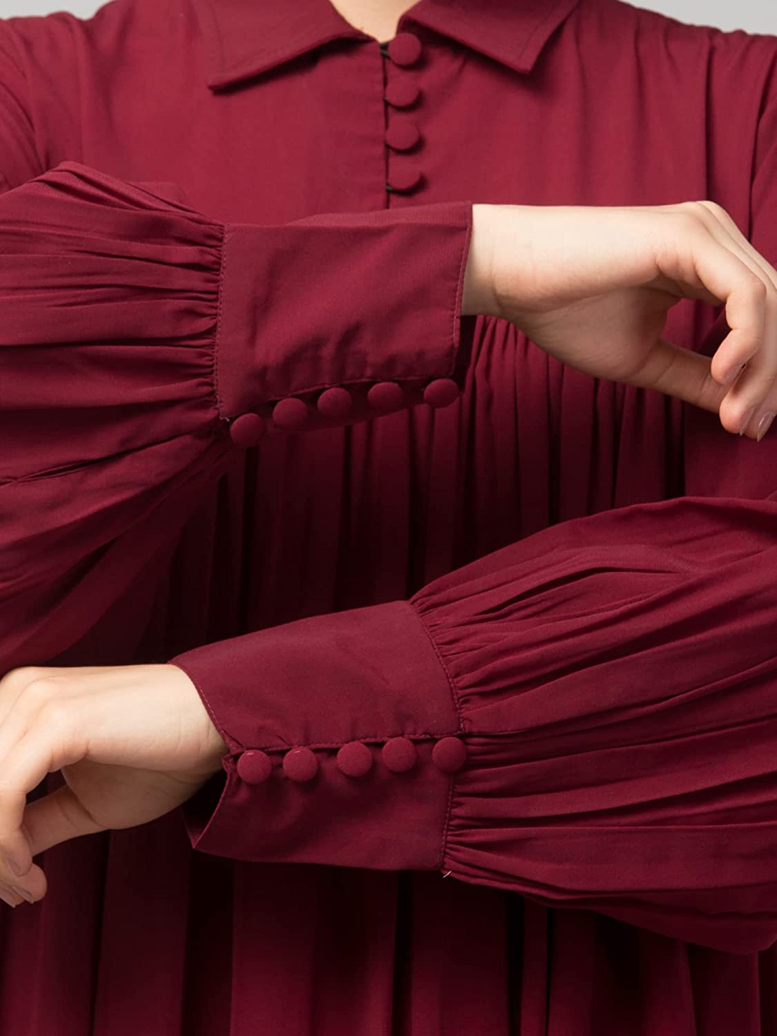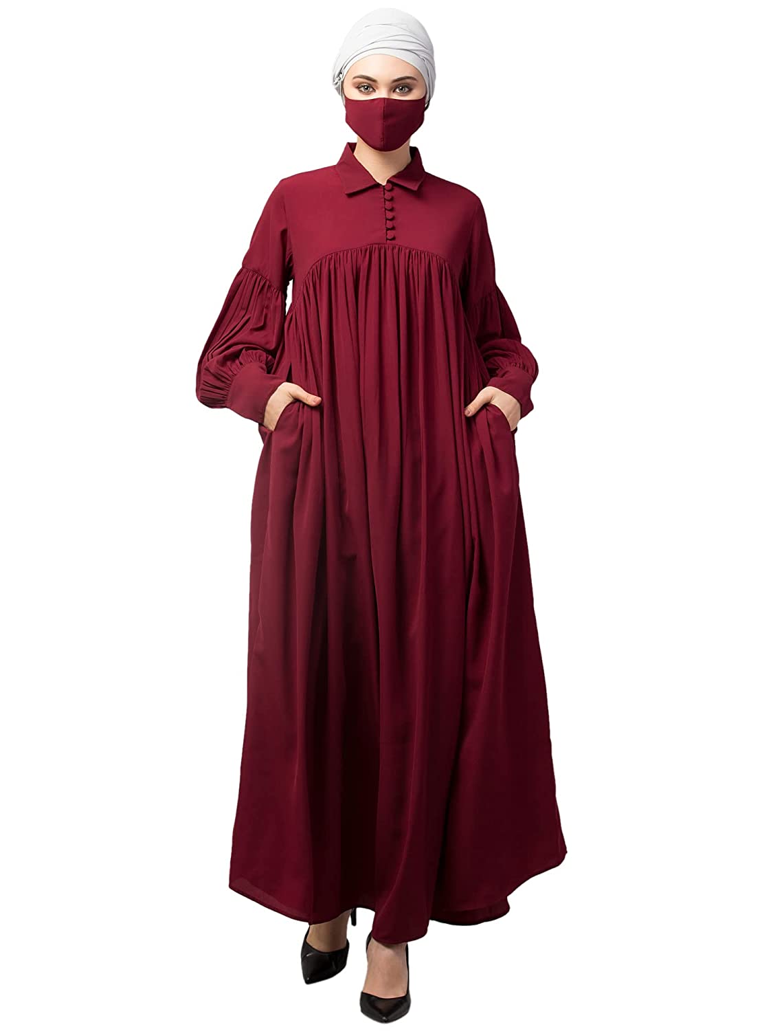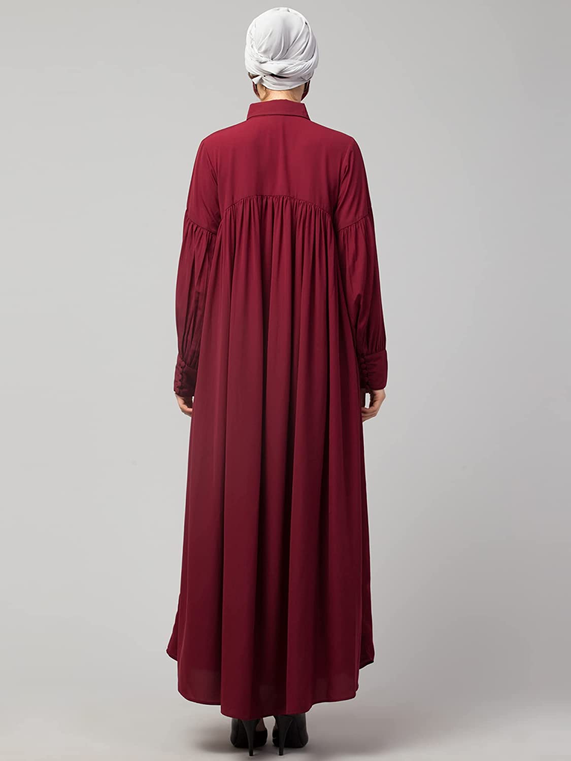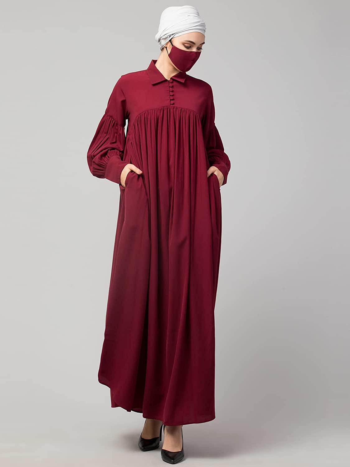 - Size and Fittings: Style name: Abaya | Collar Style: Shirt Collar I Sleeve Style: Balloon Sleeves | Fit: Abaya Fit (Please refer to the size chart) | Standard Length: 56 Inch (Length can be CUSTOMISED: For customized length please drop a message to seller with your desired length)