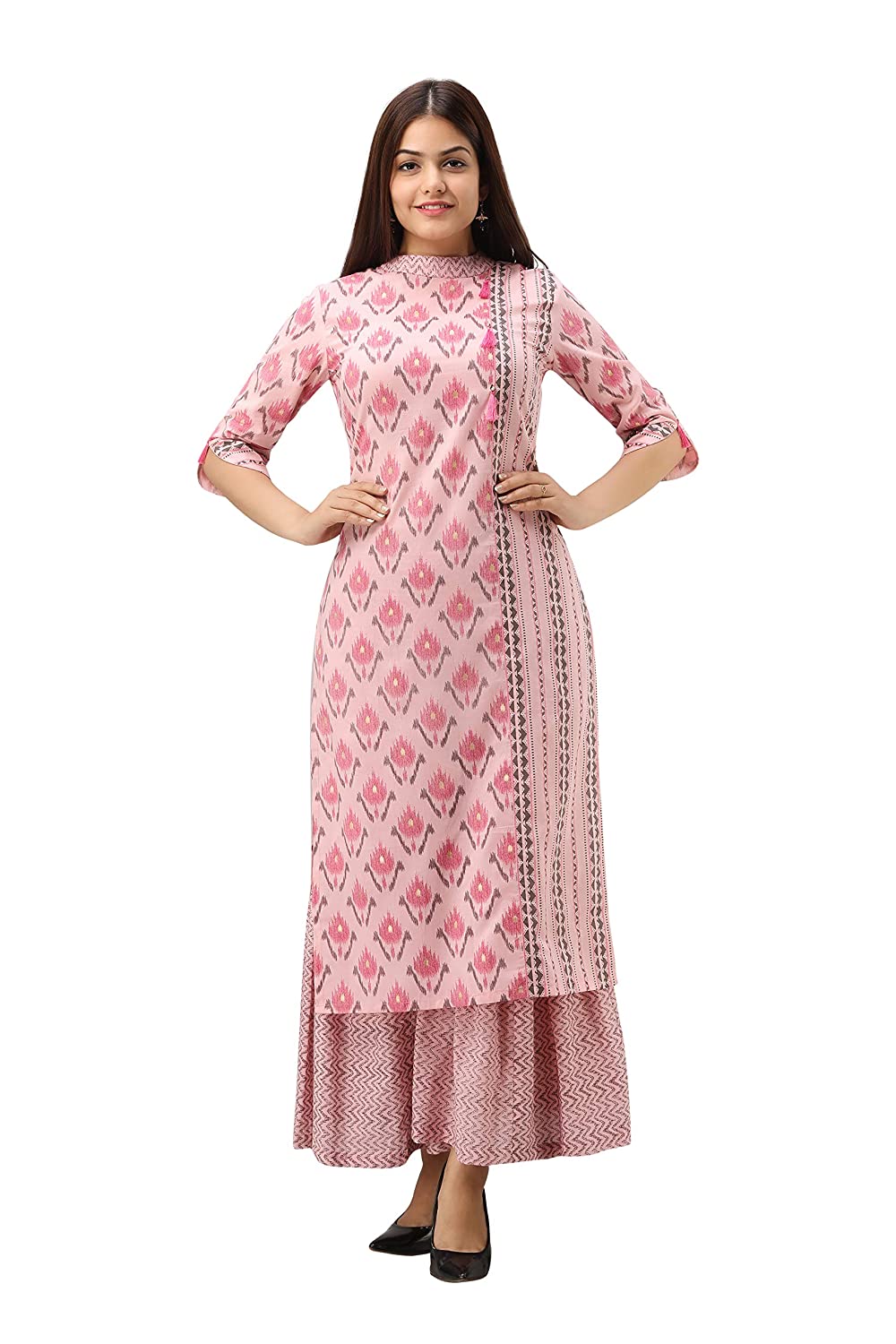 • Fabric : Cotton, Type : Straight, Print : Printed, Color : Baby Pink, Sleeve Type : 3Th Sleeve, Length : Knee Length, Stitched Type : Stitched Kurta With Sarara, Fabric Attribute: Comfortable, All Season Fabric, Breathable, Soft To Skin Touch.