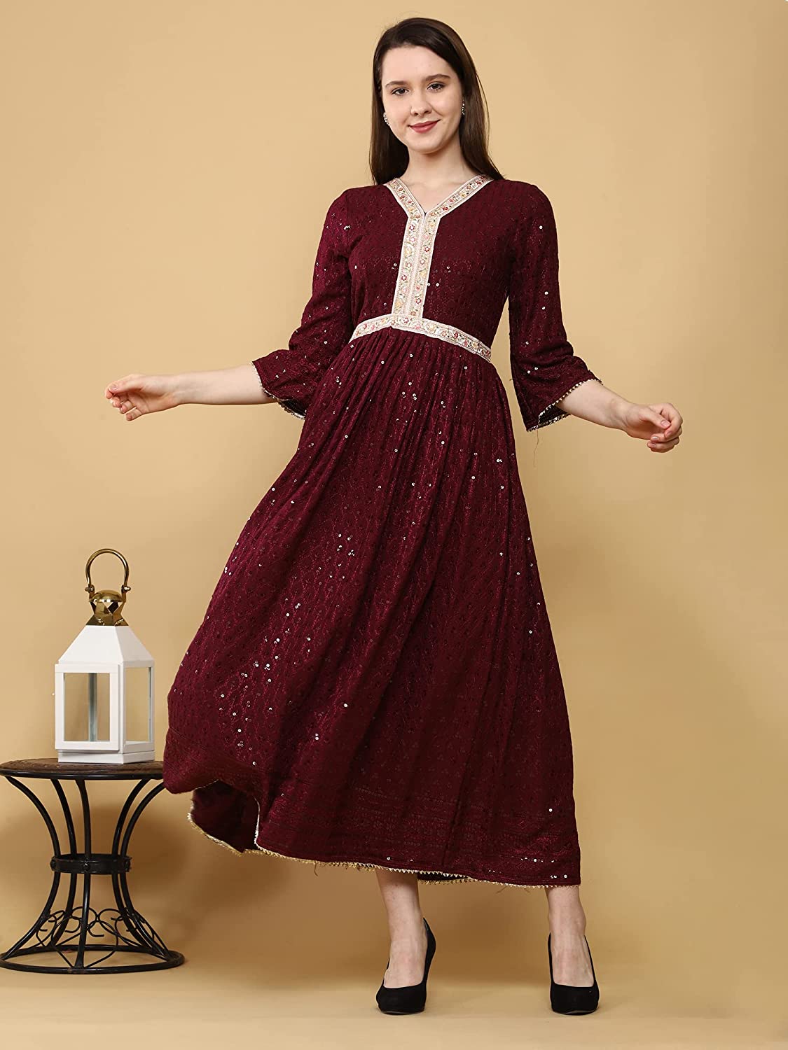 • The Embroidered V neck along with Embroidered beautiful lace on its waist adds to its appeal