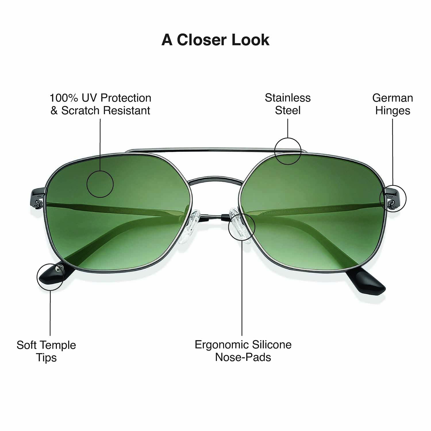 - FRAME PATTERN :- Featuring Gunmetal - Grey - Green Full Rim Hexagonal Stylish & Premium Polarized Sunglasses made from Stainless Steel which is stronger and lighter than normal metals making them ideal for For Men and Women.