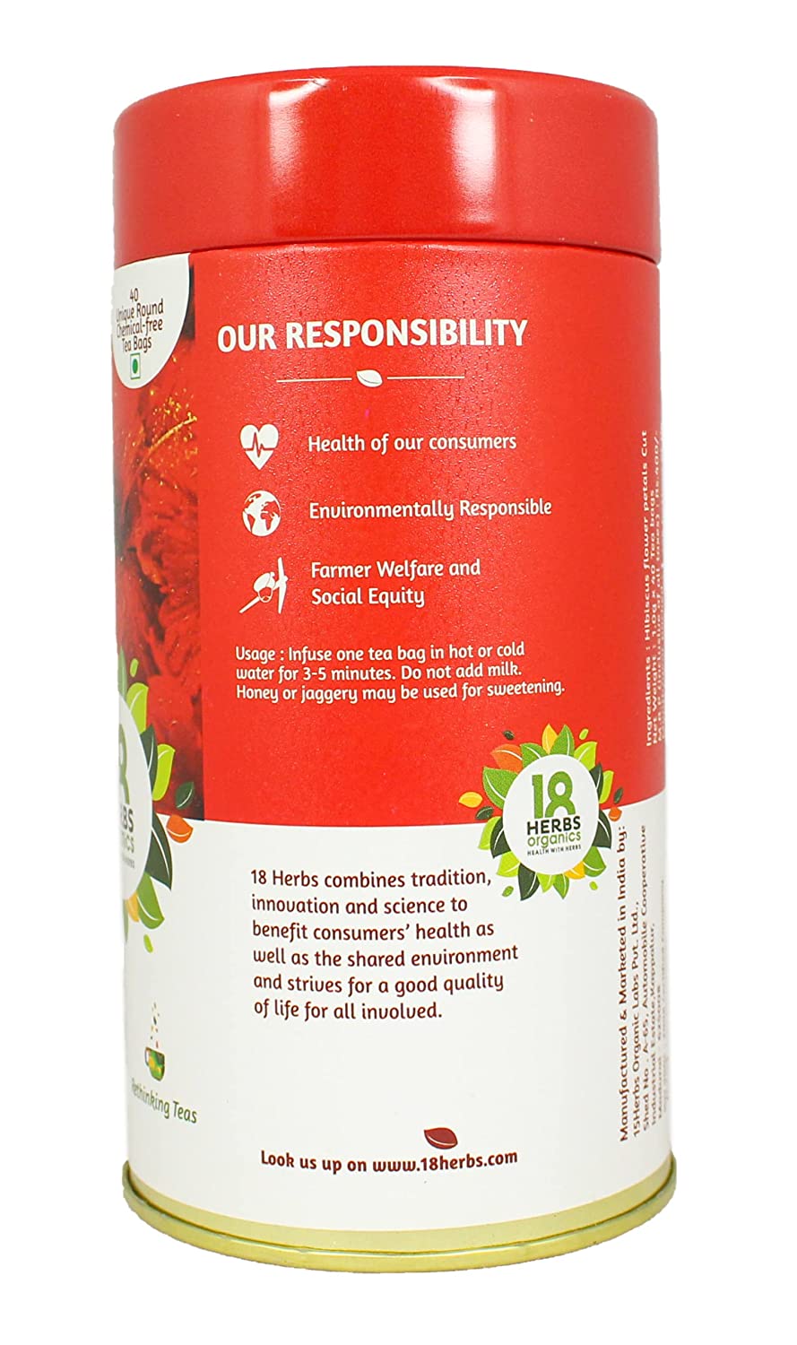 • 18 herbs organic Indian hibiscus tea is an herbal infusion made from 100% pure dried, vibrantly colored calyces or sepals of the flower. In ayurveda, hibiscus extract is used for swelling, loss of appetite, nervous disorders, heart disorders, pain in the upper respiratory tract and stomach pain.