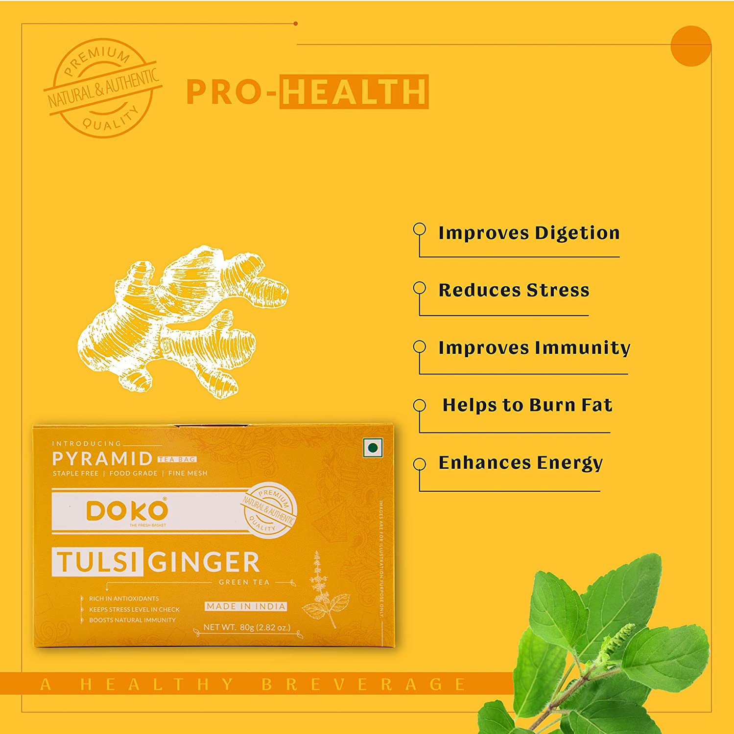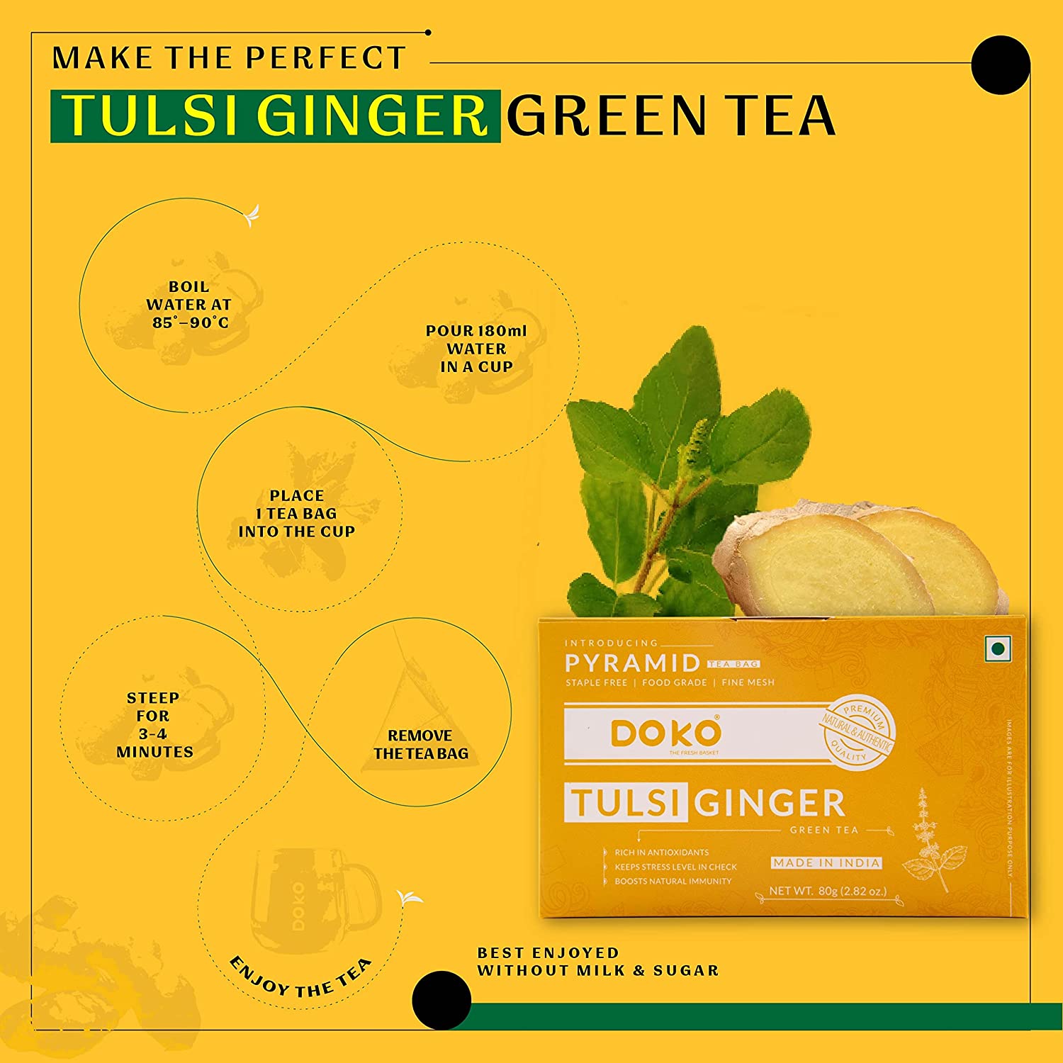 • Indulge in the authentic taste of loose-leaf tea with light limy-yellow appearance and uplifting aroma of ginger and soothing fragrance of Tulsi leaves.