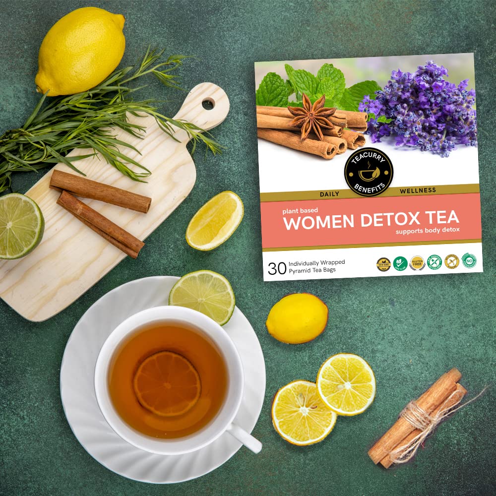 • 100% Natural Slimming Detox Tea Herbal Tea - Teacurry Women Detox Tea consists of a powerful Ayurvedic tea blend of fenugreek, ginger, cinnamon, turmeric, carom seeds, peppermint, cardamom, black pepper, cumin, fennel, nettle and hibiscus. These provide the perfect blend for Women Detox - to cleanse the digestive system and detoxify the body. Moreover, being hundred per cent natural - Women Detox Tea don't have flavours, as flavours would mean artificial ingredients.