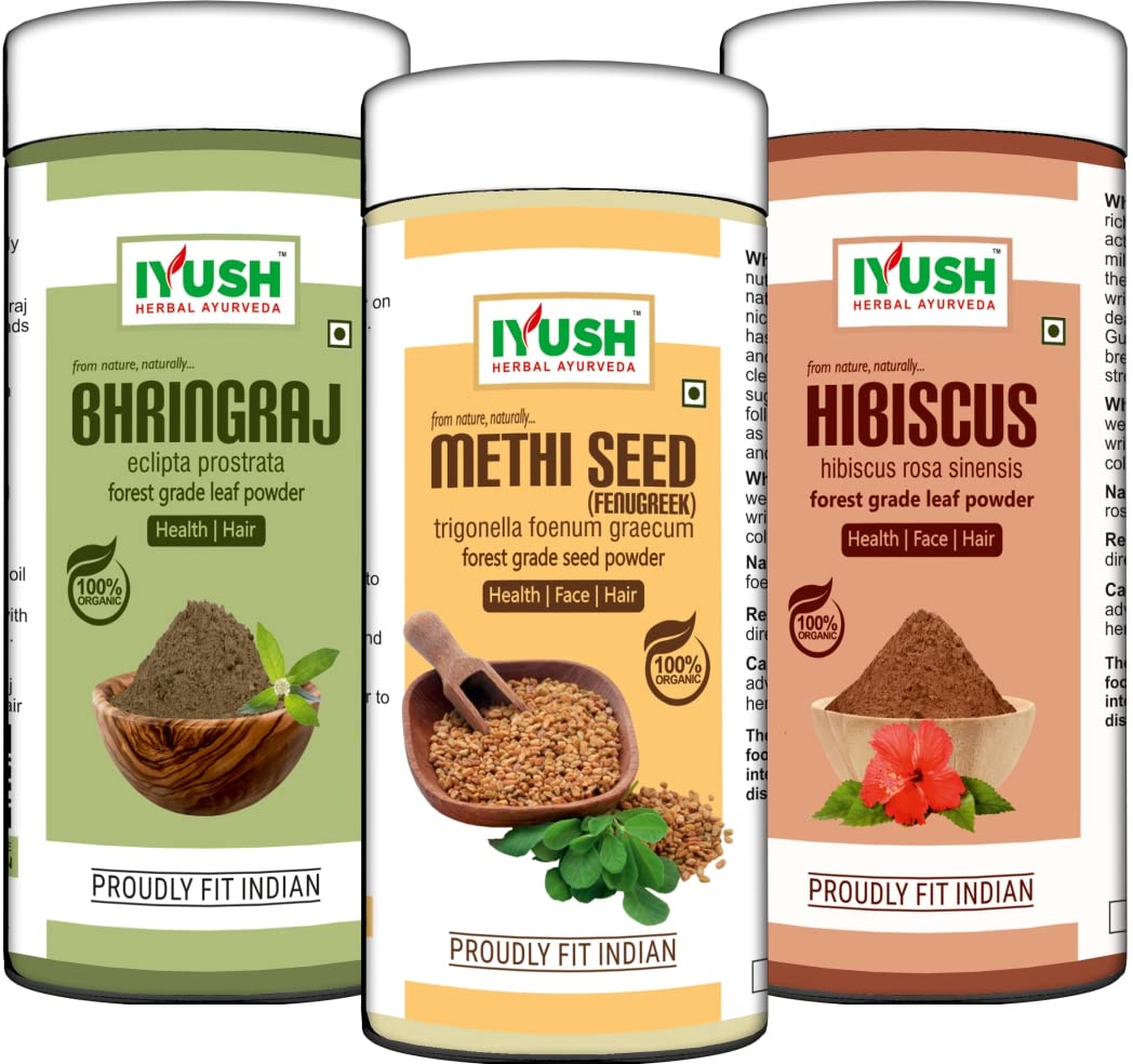 Bhringraj Powder with Methi Powder and Hibiscus Powder for Hair Growth – 300gm | Hair Mask for Dry and Frizzy Hair | Hair Volume Powder | For Skin Care & Hair Care | 100gm each