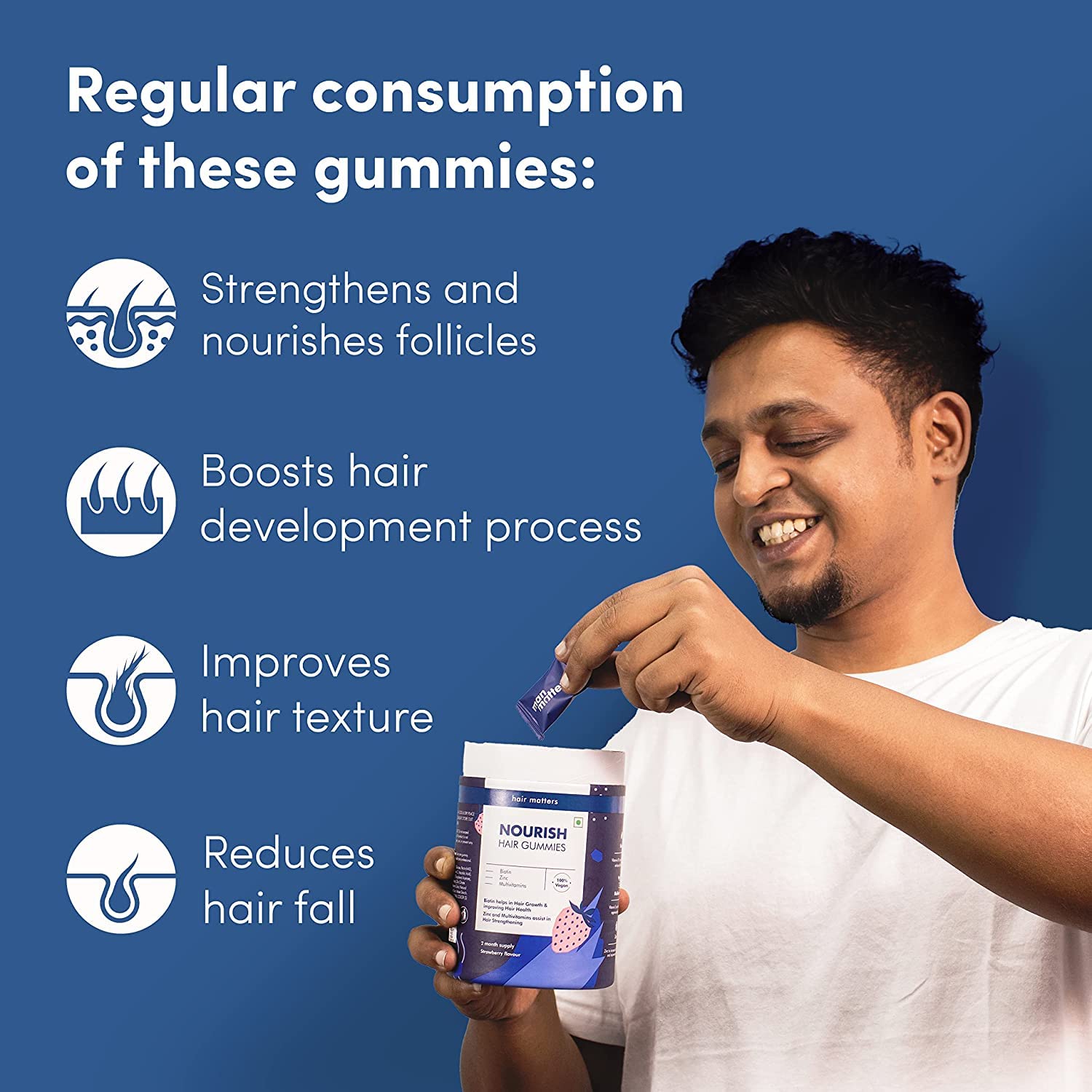 • Man Matters Biotin Hair Gummy for Healthy Hair | No Sugar Added | Biotin Gummies with Hair Vitamins | Vitamin A, Vitamin C, Vitamin E & Zinc | 60 Gummies