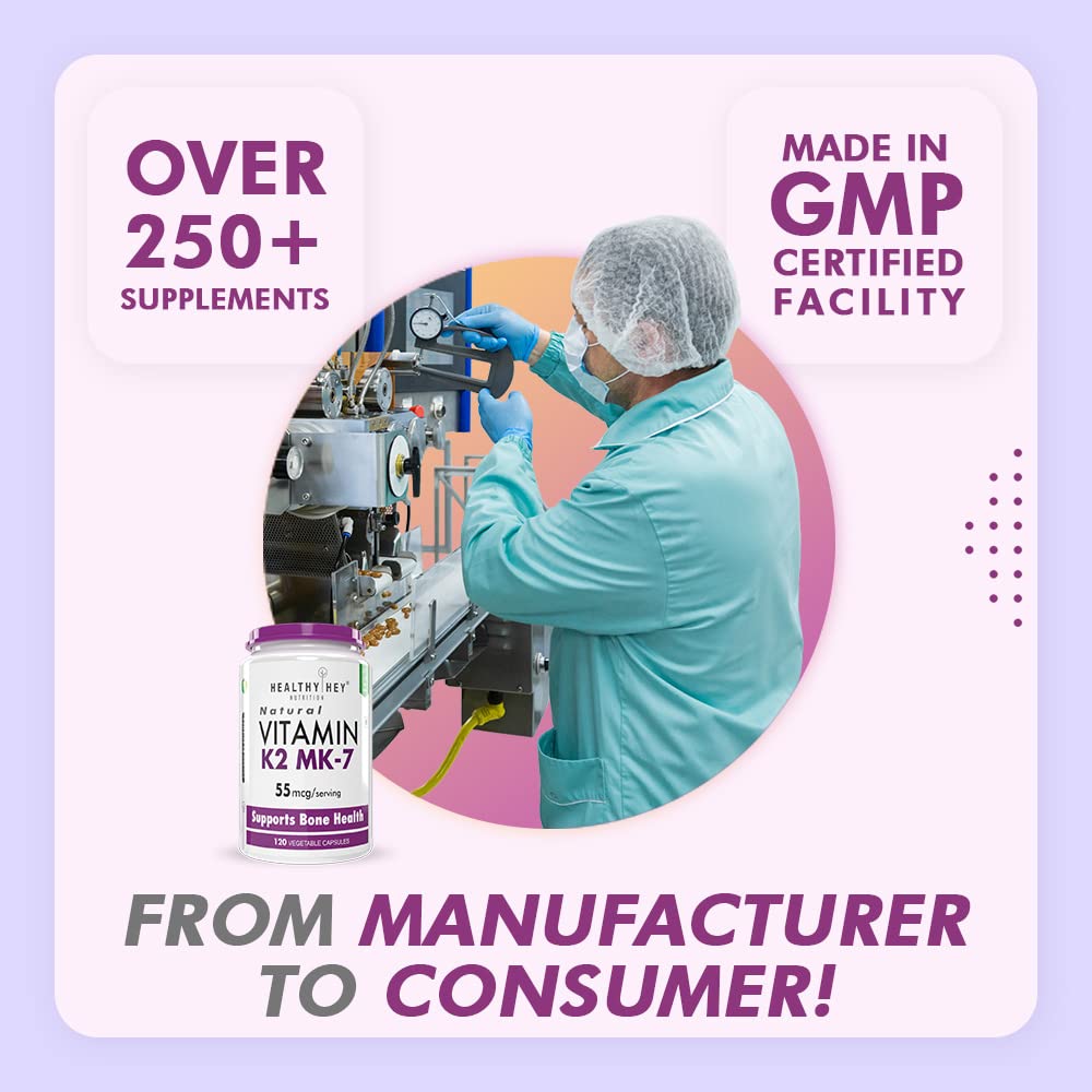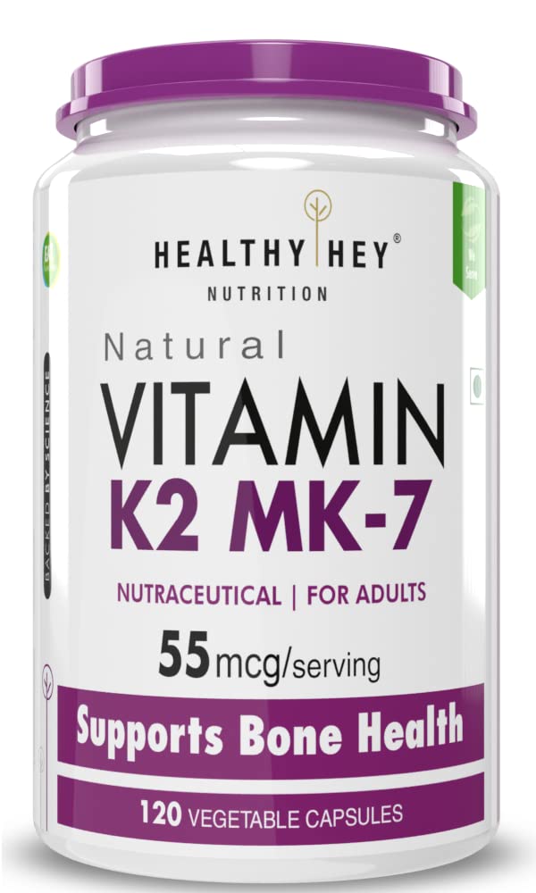 • Healthier Bones: Vitamin K2 helps your body transport calcium more effectively. HealthyHey 55 mcg of Vitamin K2 – MK7 capsules maintain calcium density in bones and keep bones strong and healthy.