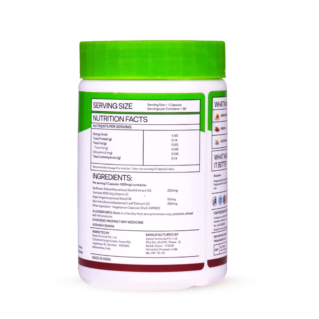 • VITAMIN E CAPSULES FOR FACE AND HAIR: OZiva Plant Based Vitamin E helps improve blood circulation to the scalp and bring a balance between the Ph levels, sebum production, and nourish the hair follicles. These vitamin E capsules help in improving scalp quality and hair strength.
