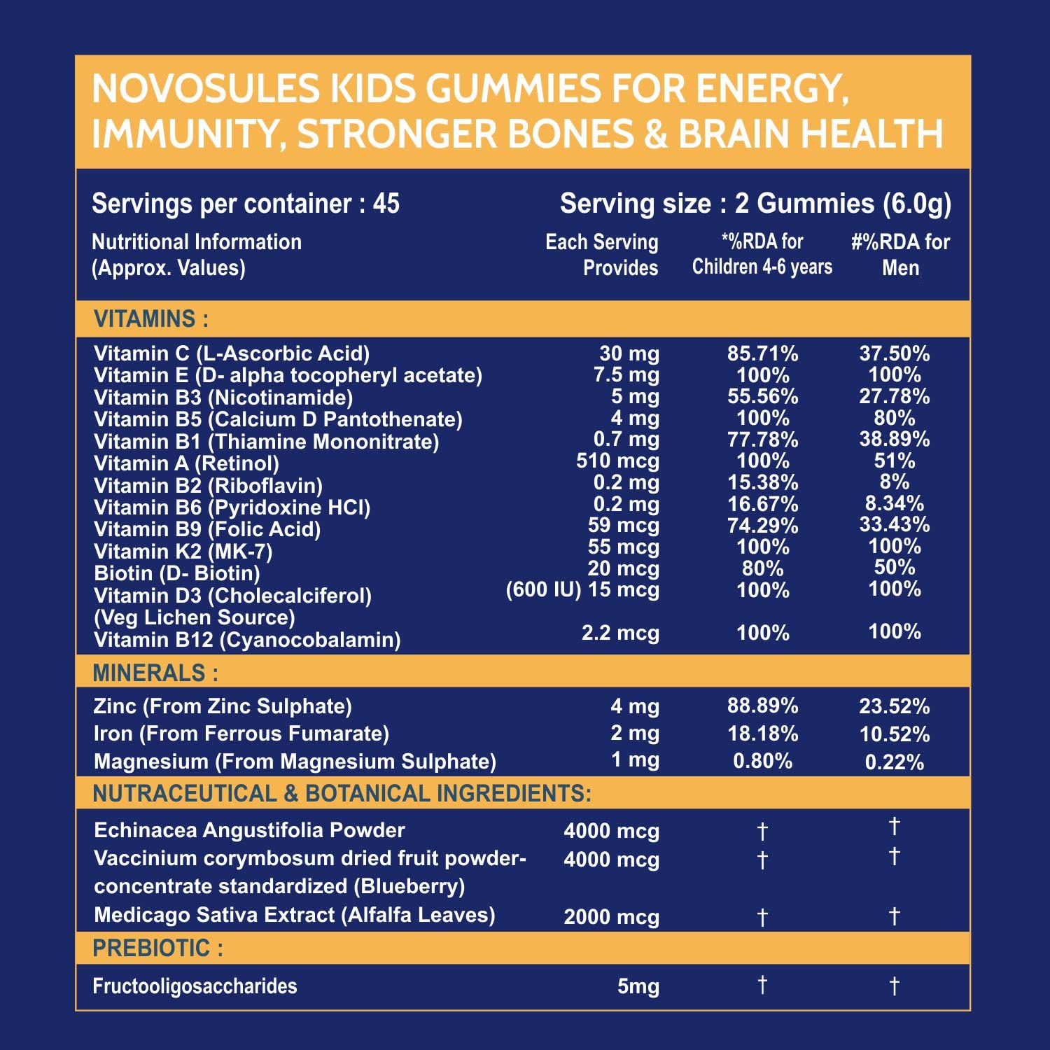• ✔ SUPERFOODS ADVANTAGE: Our Multivitamin and mineral supplements consists of Superfoods like Withania Somnifera (Ashwagandha), Alfalfa and Echinacea have a variety of health benefits like bone health, brain health and digestive health and are added in our multivitamins supplements to supercharge your kids health.