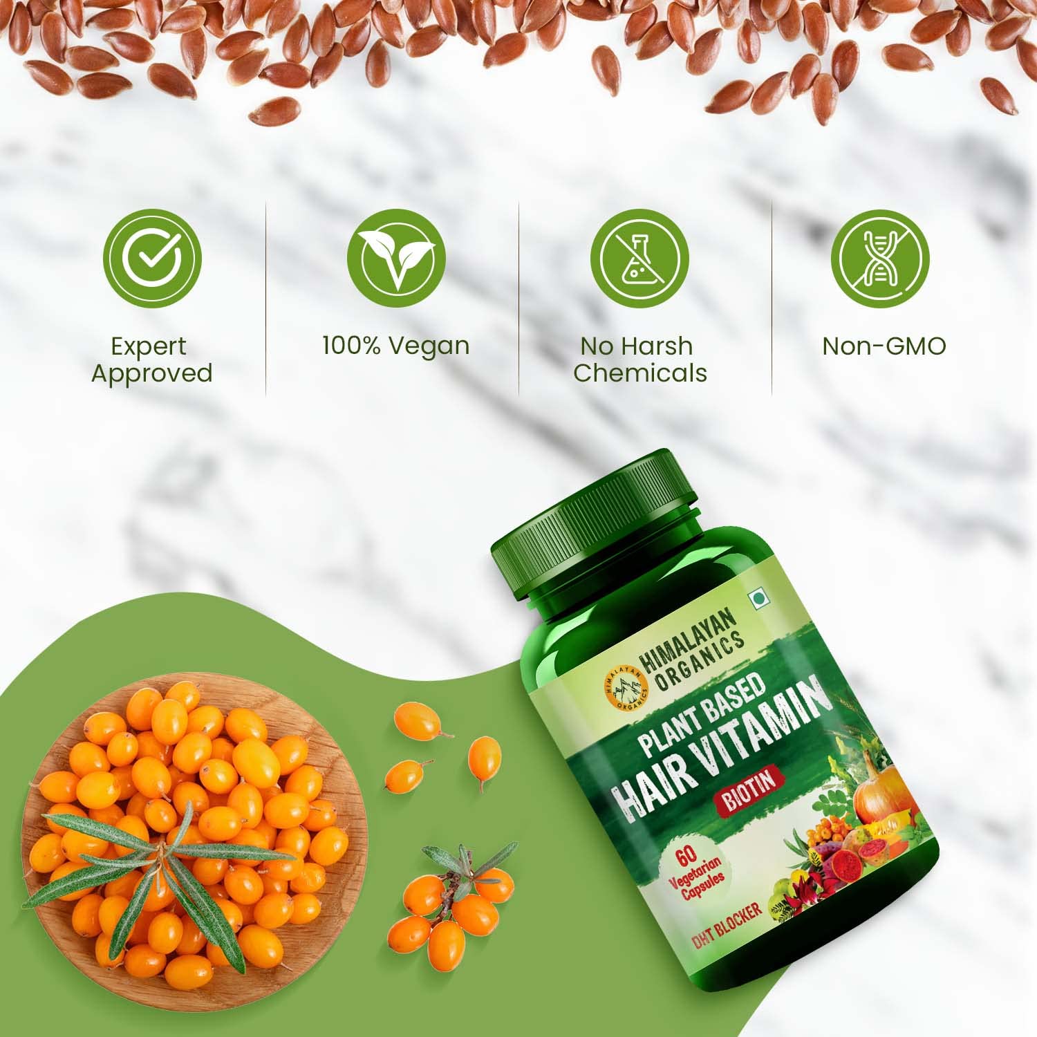 Plant Based Hair Vitamin With Biotin DHT Blocker Supplement | Vitamin A, C, D, E, B3, B5, B6, B7, B9, B12, Zinc, Calcium, Iron | Good For Hair Growth - 60 Veg Capsules