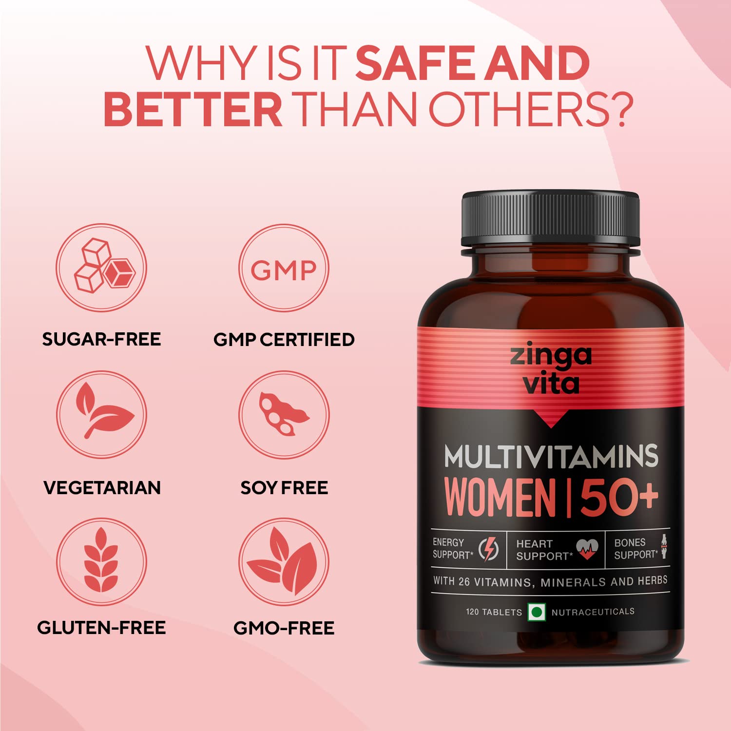 • SCIENTIFICALLY FORMULATED FOR THE 50+ WOMEN: Make your wellness a daily habit with Zingavita Multivitamins that is a SUPER blend of 26 Vitamins, Minerals, and Herbs, formulated specially for women to support healthy, active lifestyle, heart & joint health