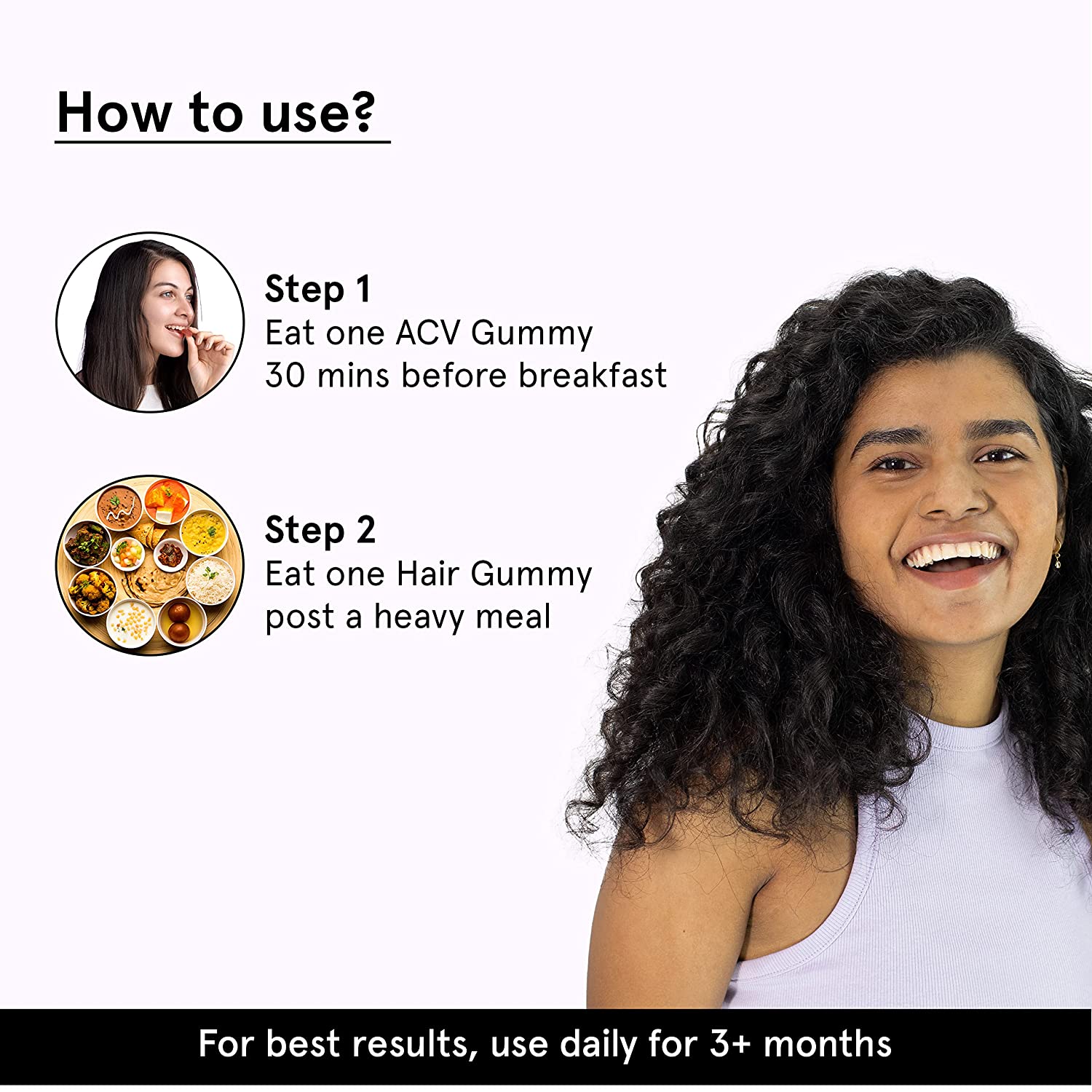 Healthy Gummies for Hair & Body |30 Days Pack|Apple Cider Vinegar Gummies,Biotin Hair Gummies|High Potency Biotin Supplements for Stronger Hair| Reduce Hair fall|Improves Digestive Health