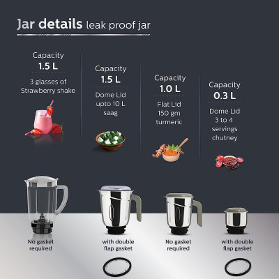 Philips HL7759/00 Mixer Grinder, 750W Turbo Motor, 4 Jars (Black), Quick cool ventilation for longer motor life
