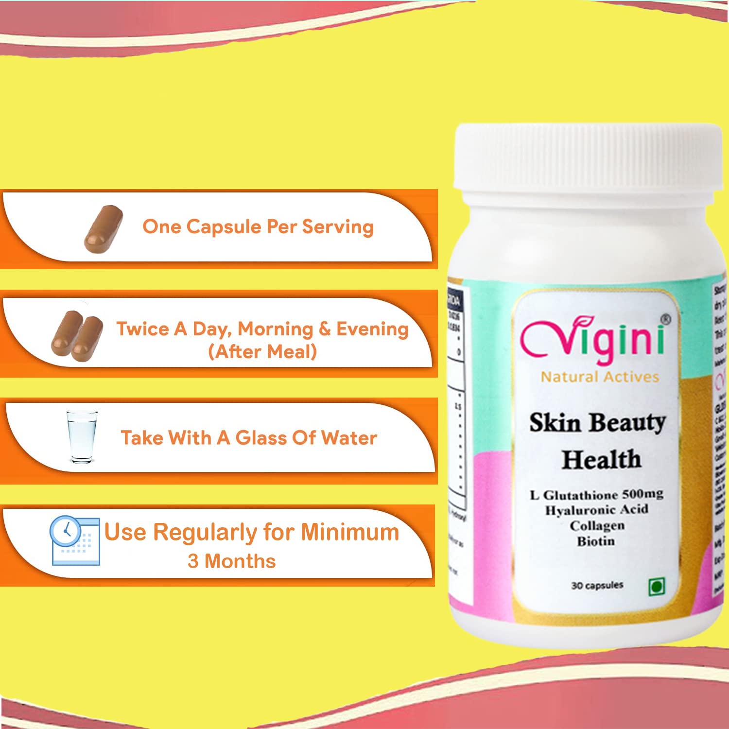 Vigini Glutathione Capsule Brightens skin tone to reveal a radiant