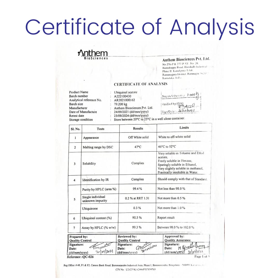 Antioxidant: Coenzyme Q10 helps reduce the damage due to oxidative