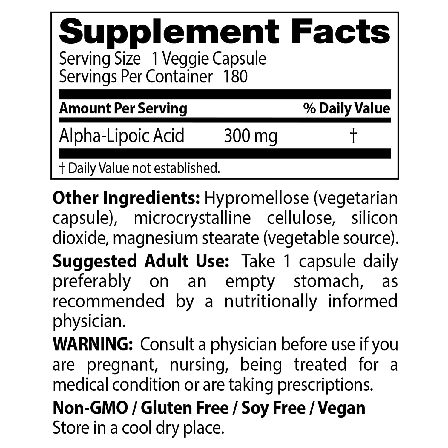 | Special Ingredients | Alpha-Lipoic acid Hypromellose (vegetarian capsule), microcrystalline cellulose, silicon dioxide, magnesium stearate (vegetable source). See more |