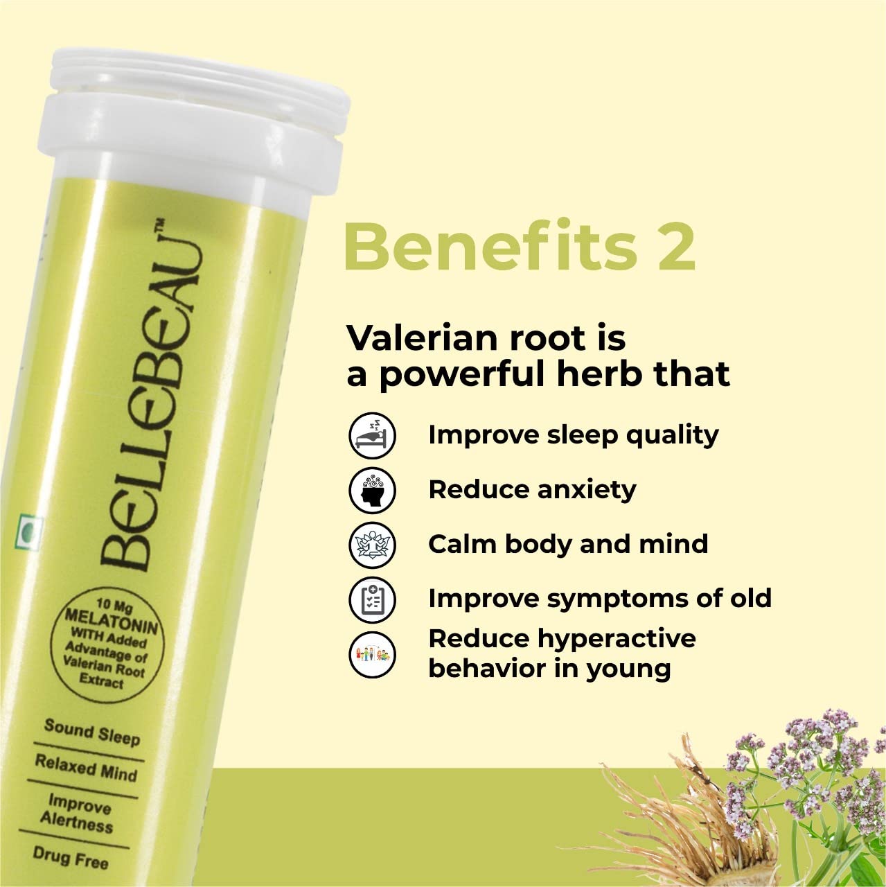 Melatonin 10mg Effervescent Tablet with Valerian Root Extract for Healthy Sleep Cycle | Non habit forming