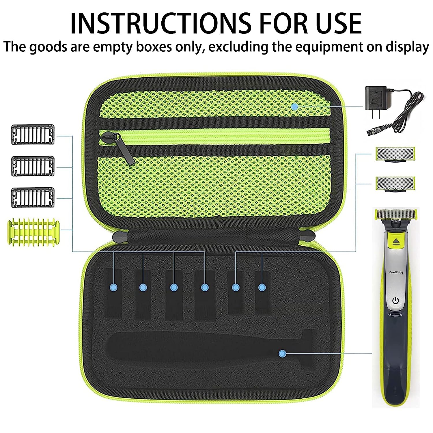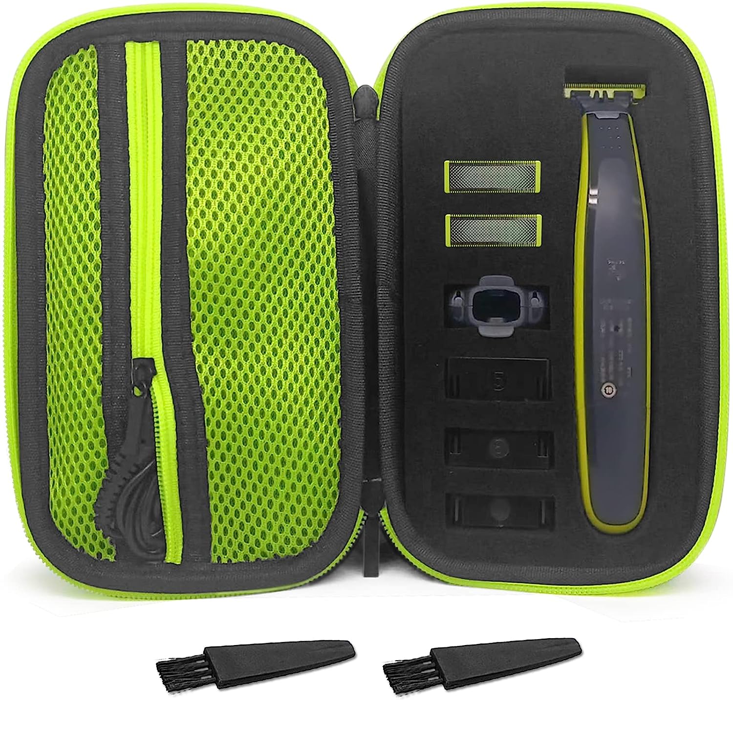 • Large Capacity - The case has 6 small slots for storing trimming combs and replacement heads, 1 large slot for storing razors, and an extra-large mesh pocket for your charging cables and other accessories