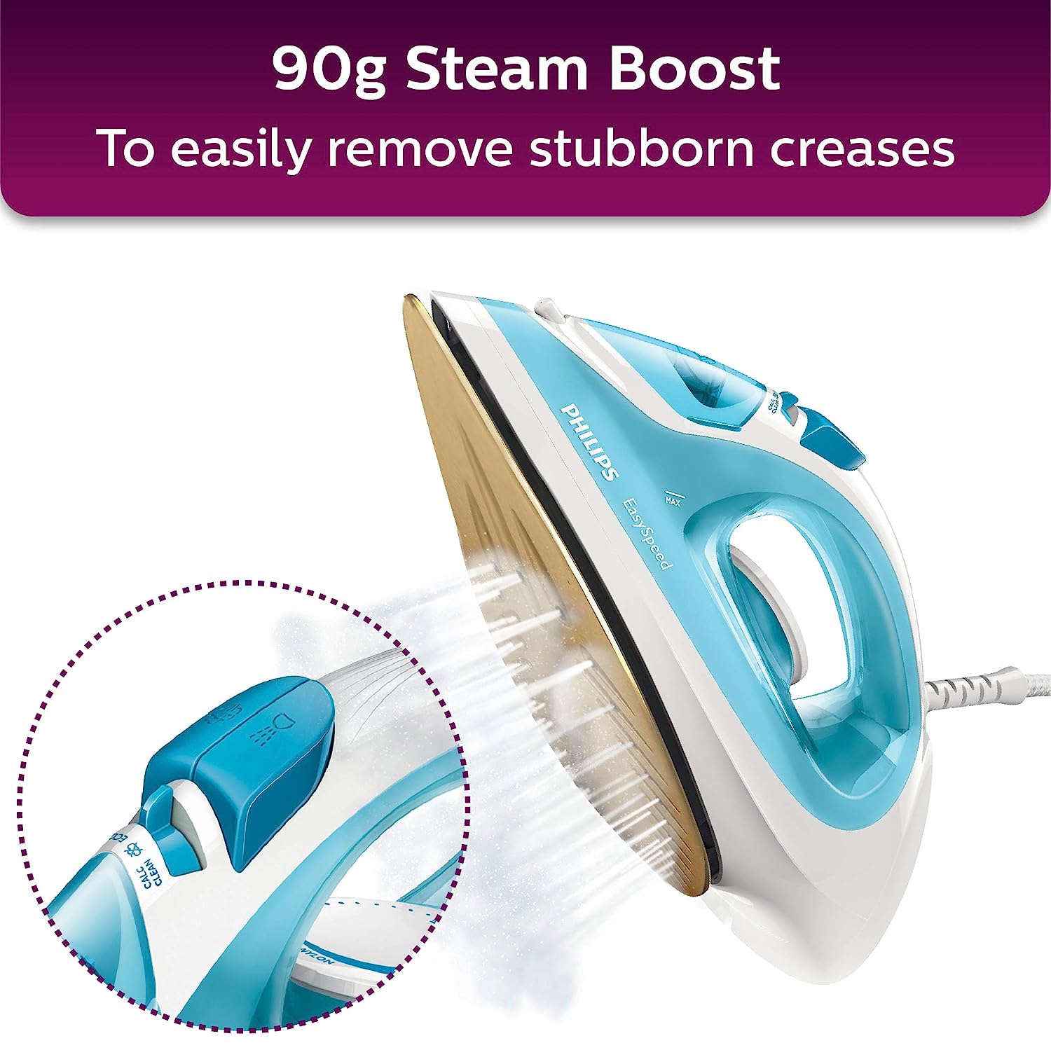 • STEAM BOOST: The irons 100 g steam boost helps remove even the most stubborn of creases