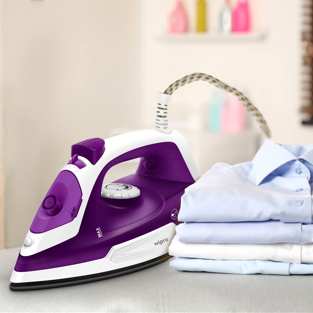 Wipro Vesta 1380Watt Compact Steam Iron|Smart light sensor|Self Cleaning Func|2 year warranty|16g/min Steam|Vertical&Horizontal Steaming|.8g/shot burst|Mini & Portable for travel|Overheat protection