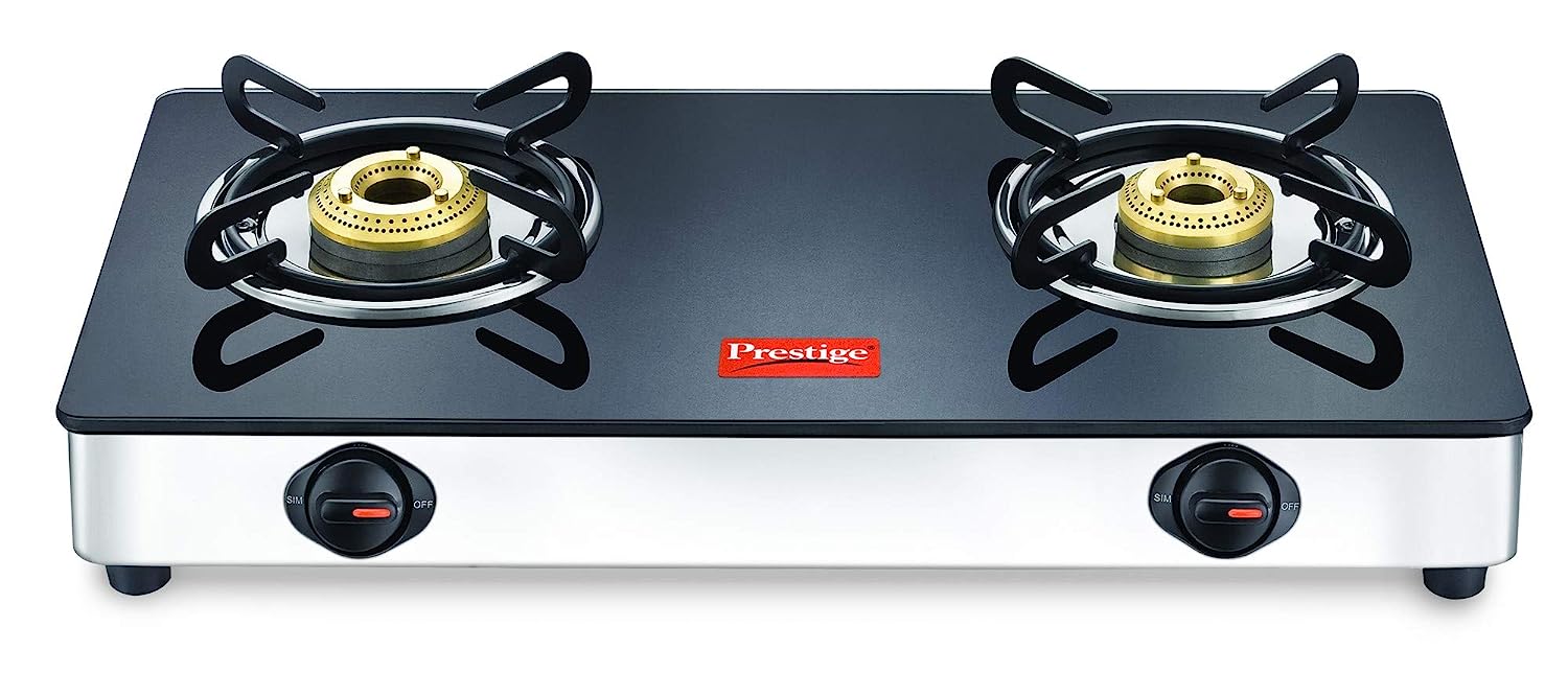 Prestige Magic 2 Burner Gas Stove Stainless Steel Body GTMC 02 SS, Black, Manual